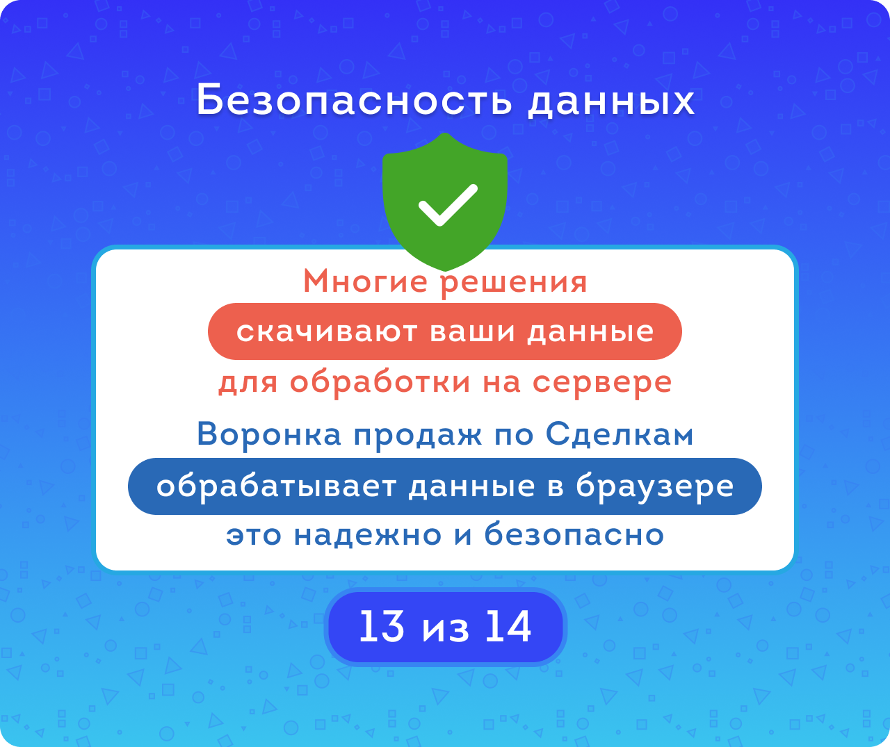 С нашим приложением вы получаете мощный инструмент для контроля за процессом продаж. А для проведения анализа клиентской базы в разрезе B2B и B2C – воспользуйтесь приложением Сегментация клиентов
