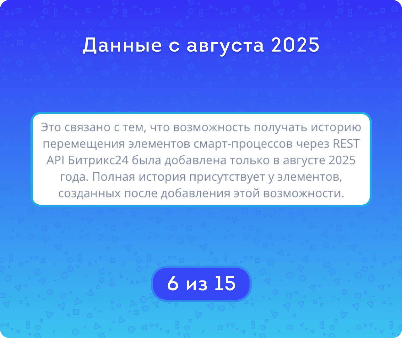 — 02.10.2025: Устранили проблему с загрузкой истории движения по стадиям при большом объёме записей.