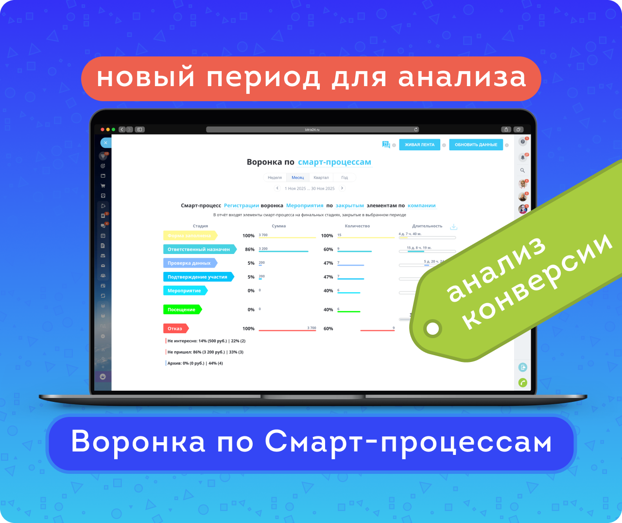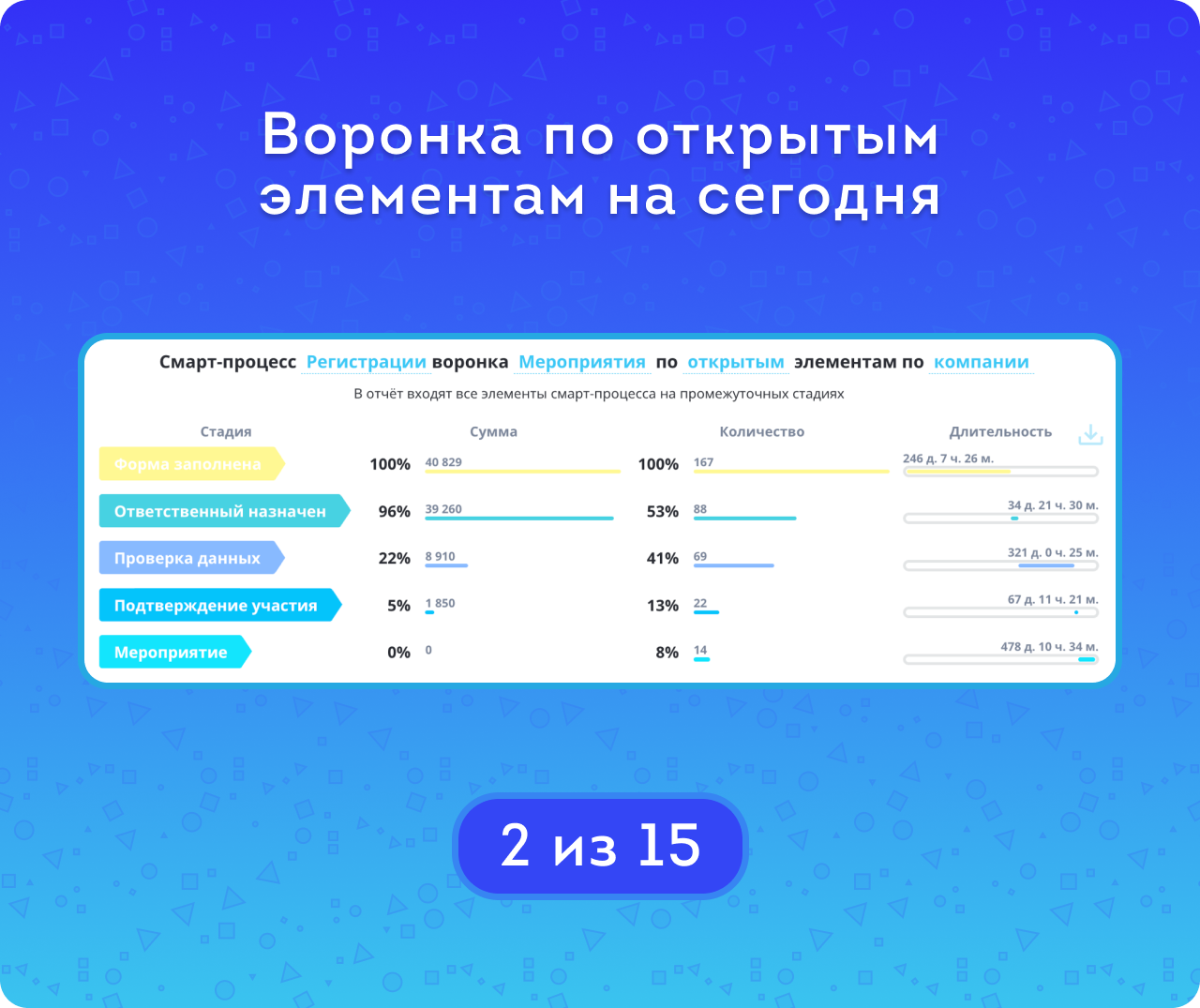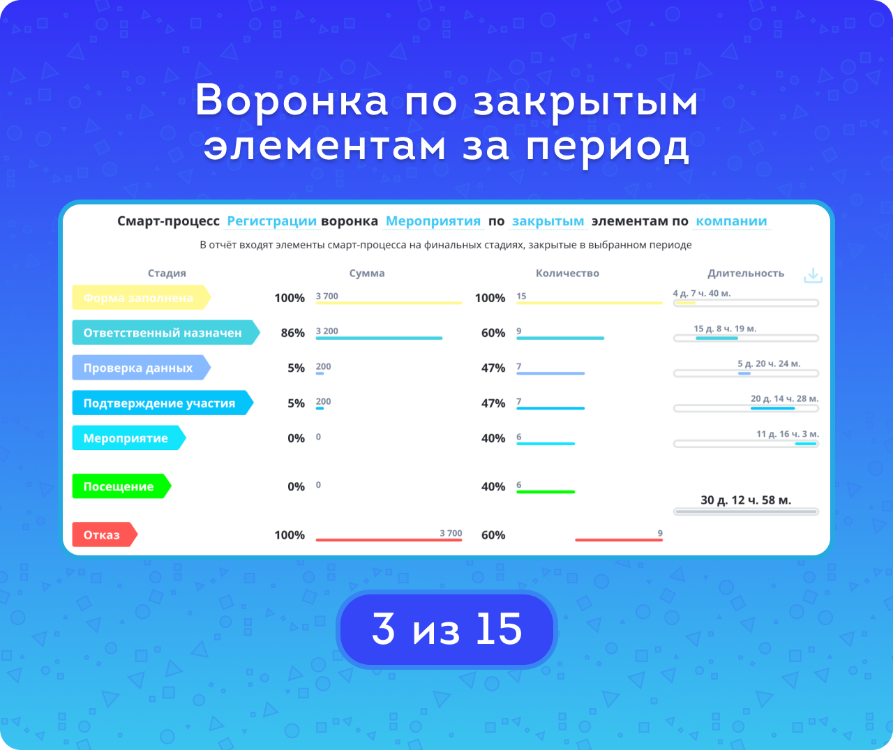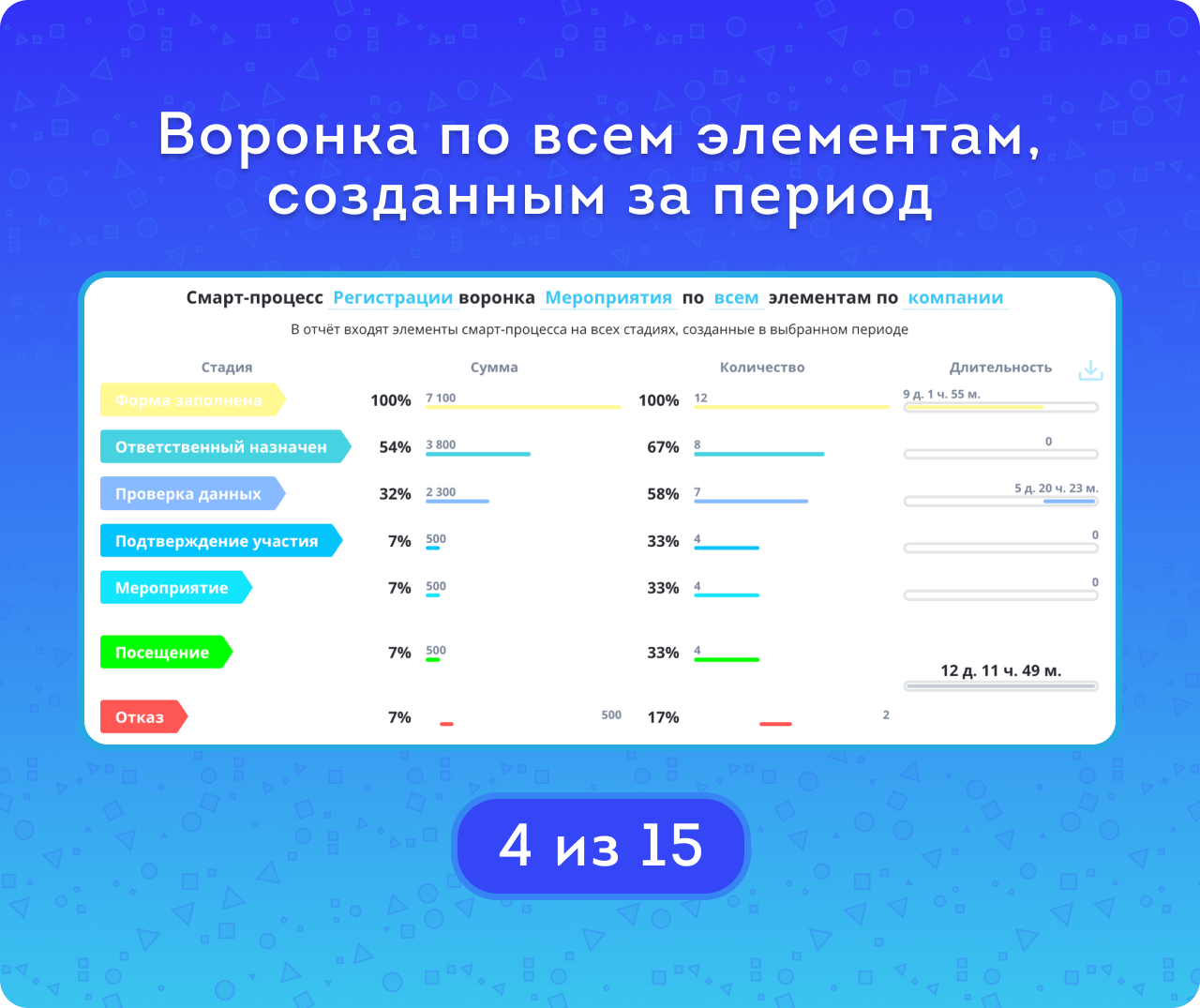Анализ конверсии и длительности смарт-процессов по стадиям