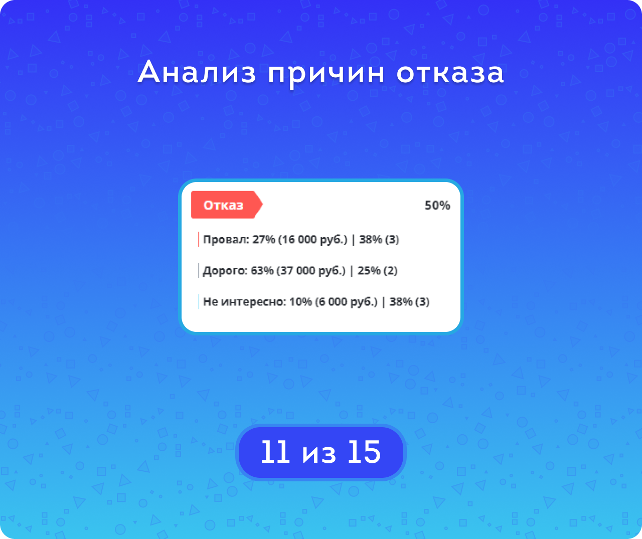 Помимо общих показателей по сумме, количеству и конверсии отказа, вы можете более подробно изучить причины неудач для разных провальных стадий.