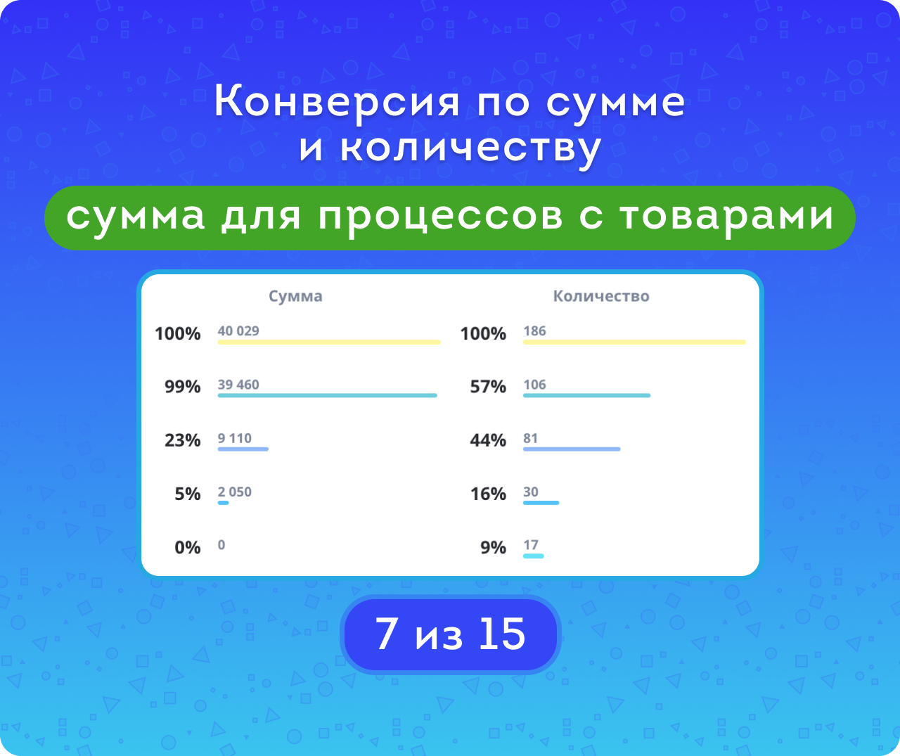конверсия (по сумме и по количеству);