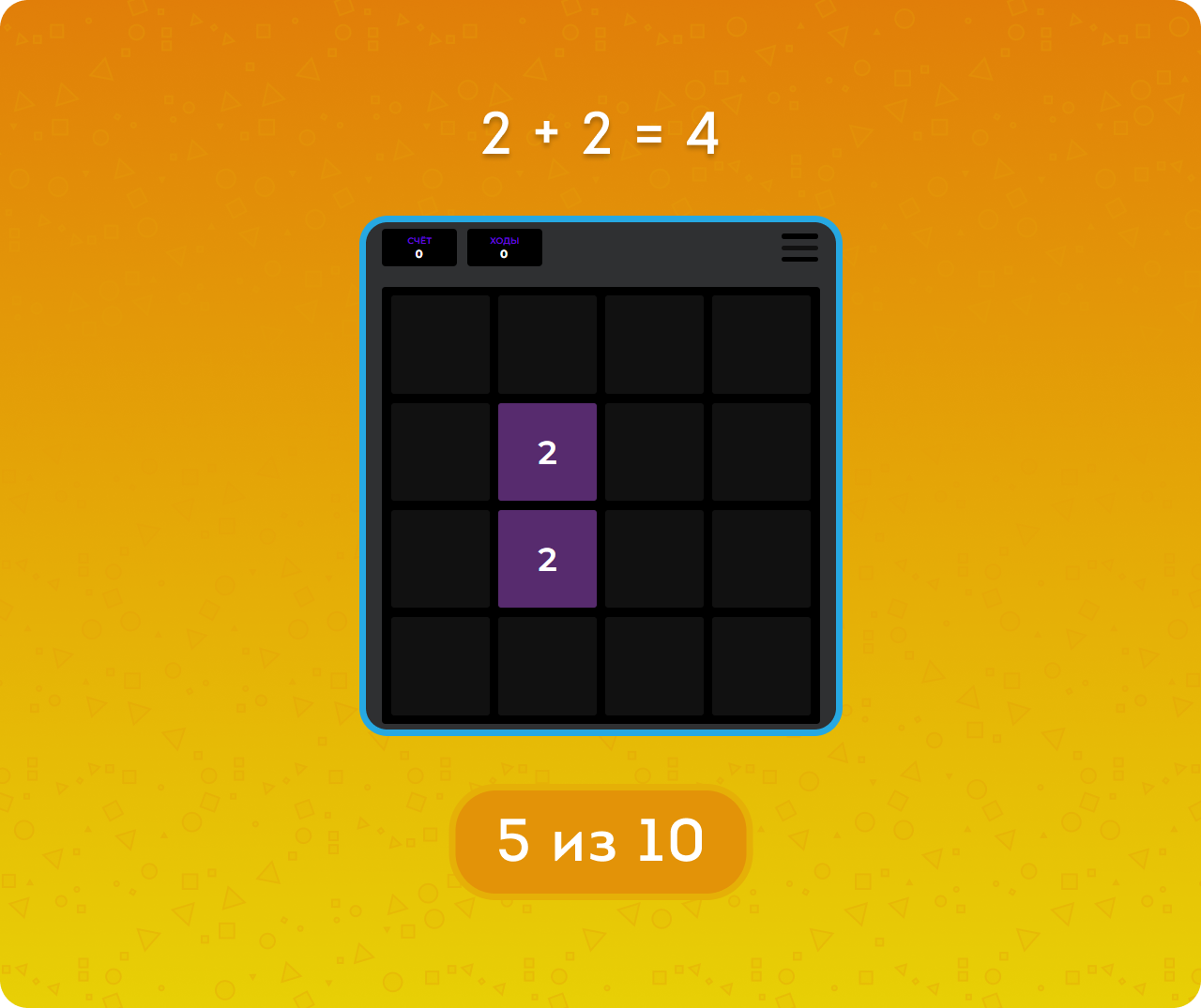 1. На игровом поле 4х4 на каждом ходе появляется плитка с числом 2.