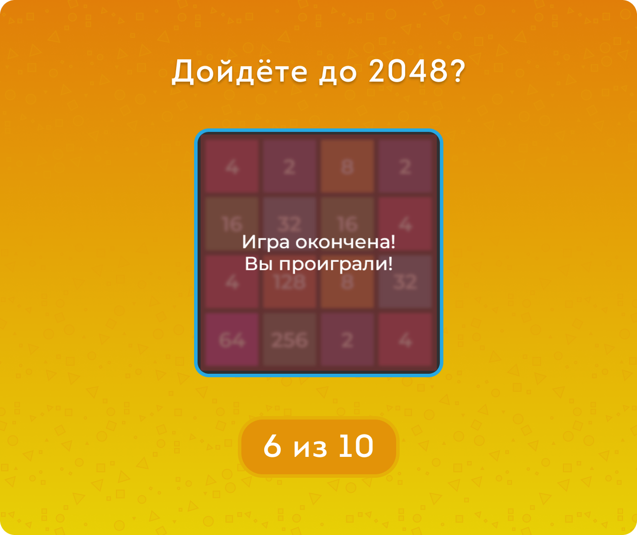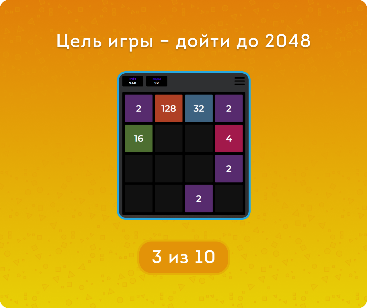 6. Выиграть игру можно, собрав плитку номиналом «2048». После этого игра заканчивается.