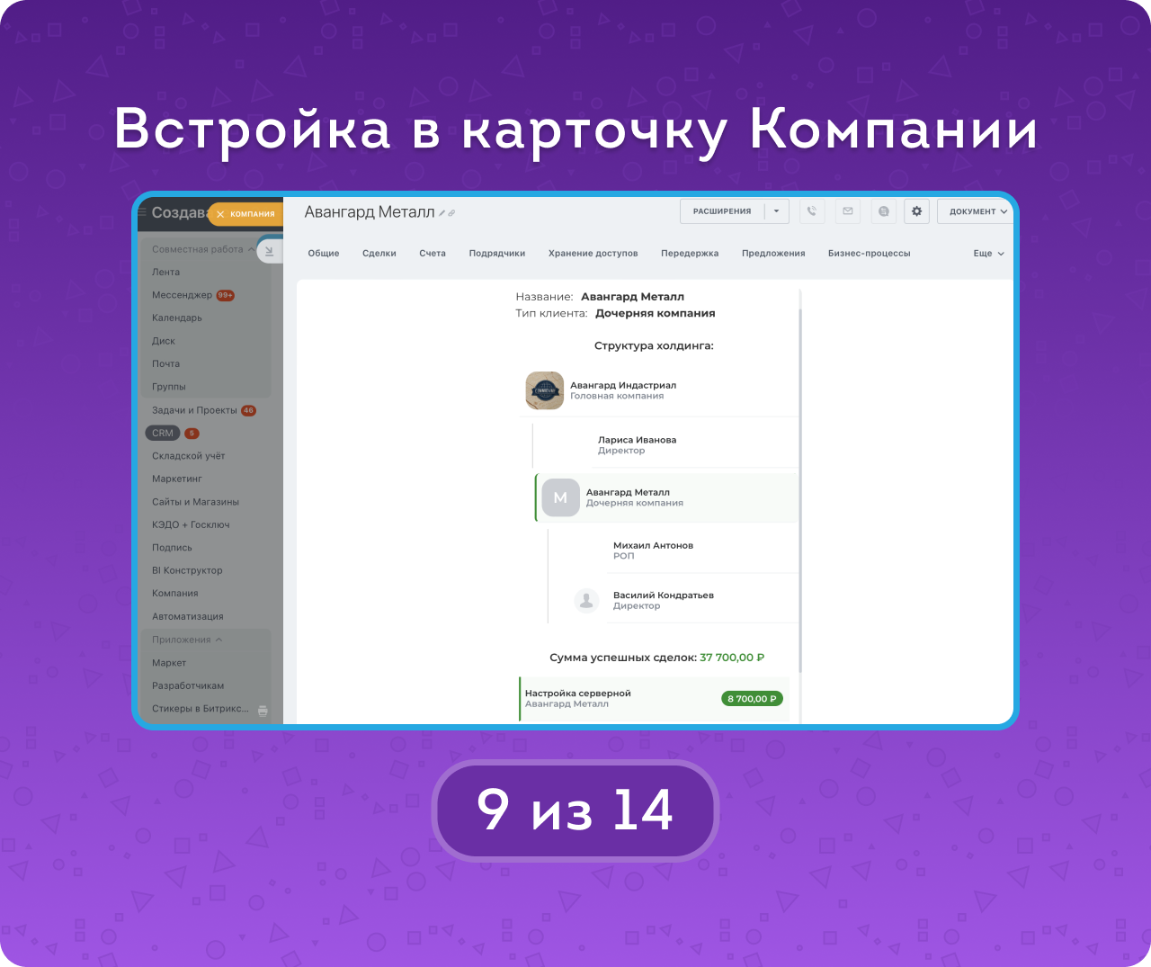 Встройка в карточку компании быстро выделит ее место в холдинге.