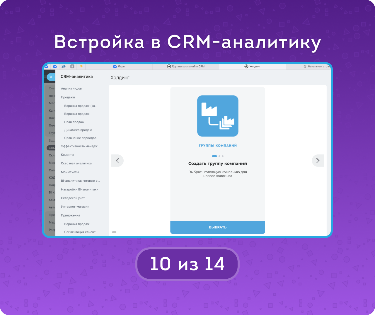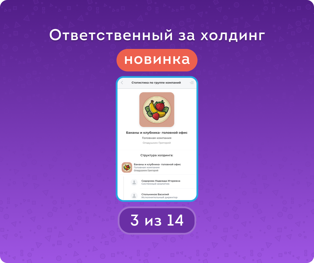— 09.10.2025: Вывели ответственных за компании в холдинге и поправили баги с сортировкой и поиском.— 11.05.2025: Добавили новый режим Статистика холдингов и две встройки