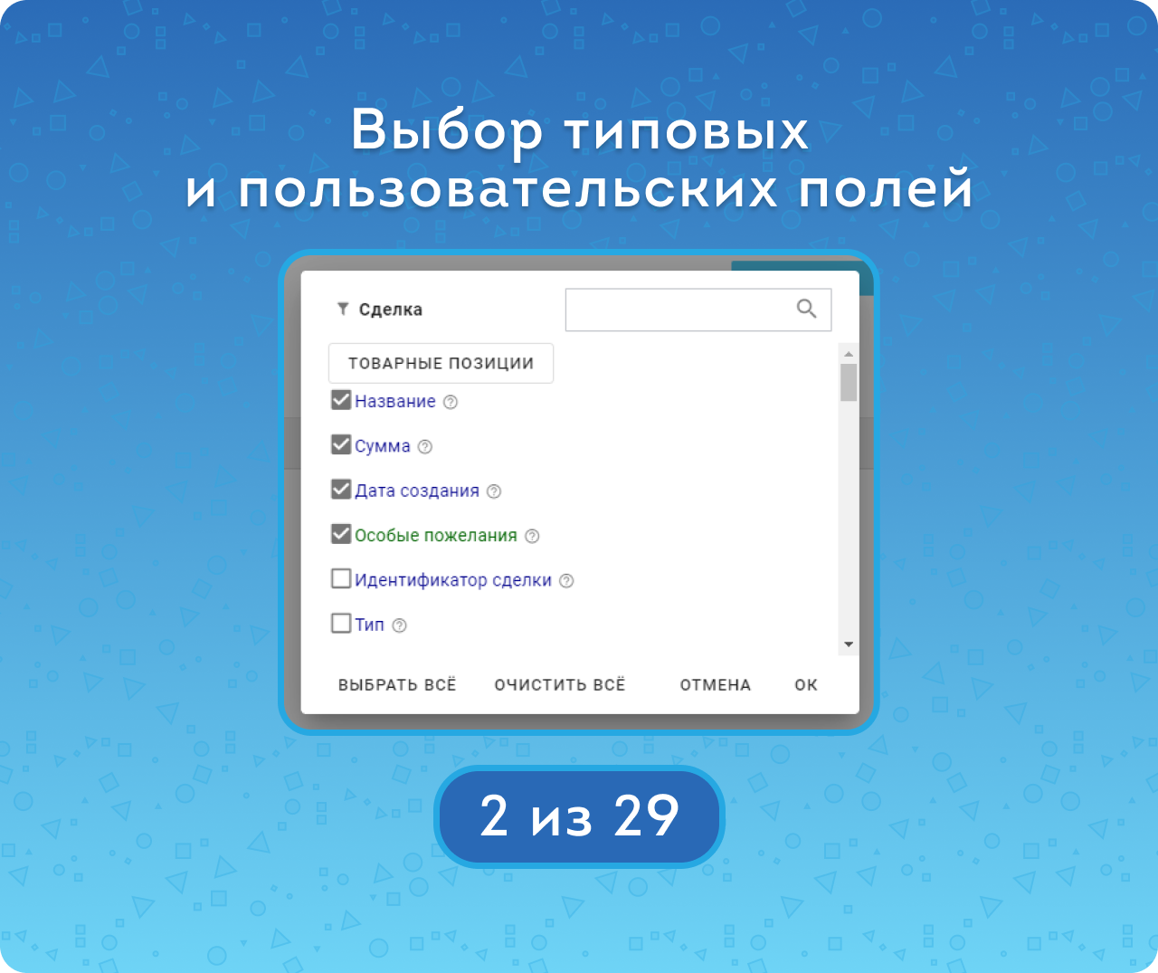 - Можно добавлять в отчёт Товары Лидов и Товары сделок.