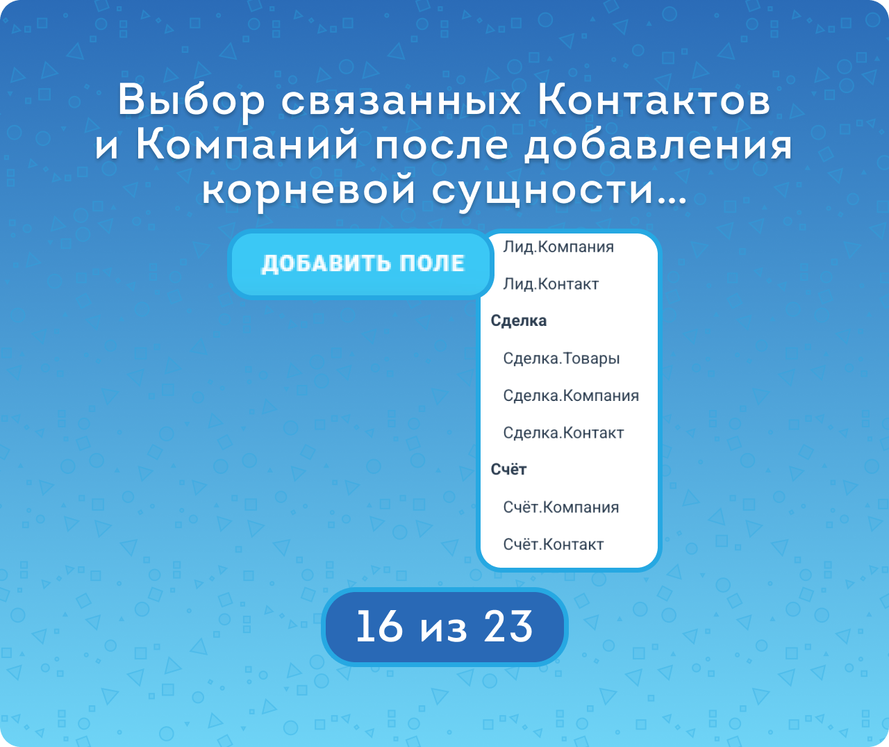 - Добавлять поля по связанным Компаниям и Контактам.