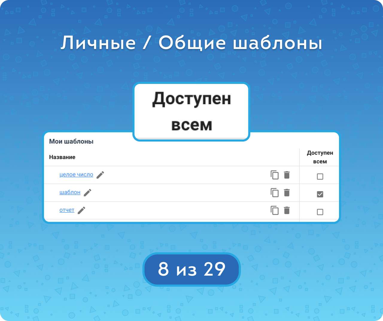 — 01.09.2025: разделили шаблоны на «Мои» и «Общие»