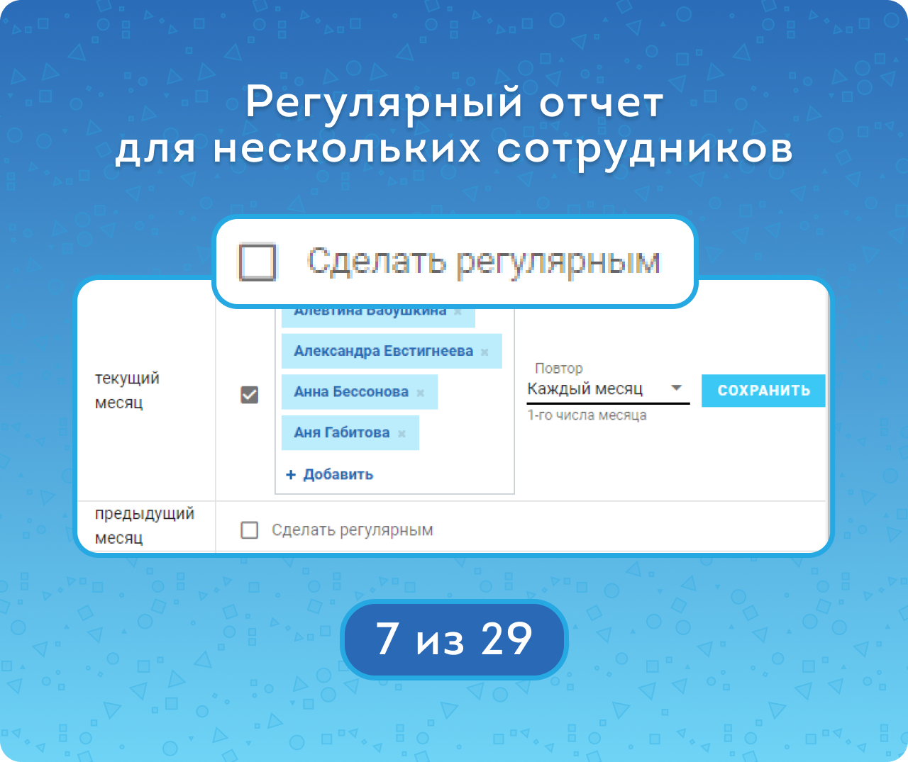 Кроме того, шаблон можно сделать регулярным для публикации в ленту Новостей. Эта функция доступна только администраторам портала. Почитать про особенности и настройки регулярного отчета можно тут.