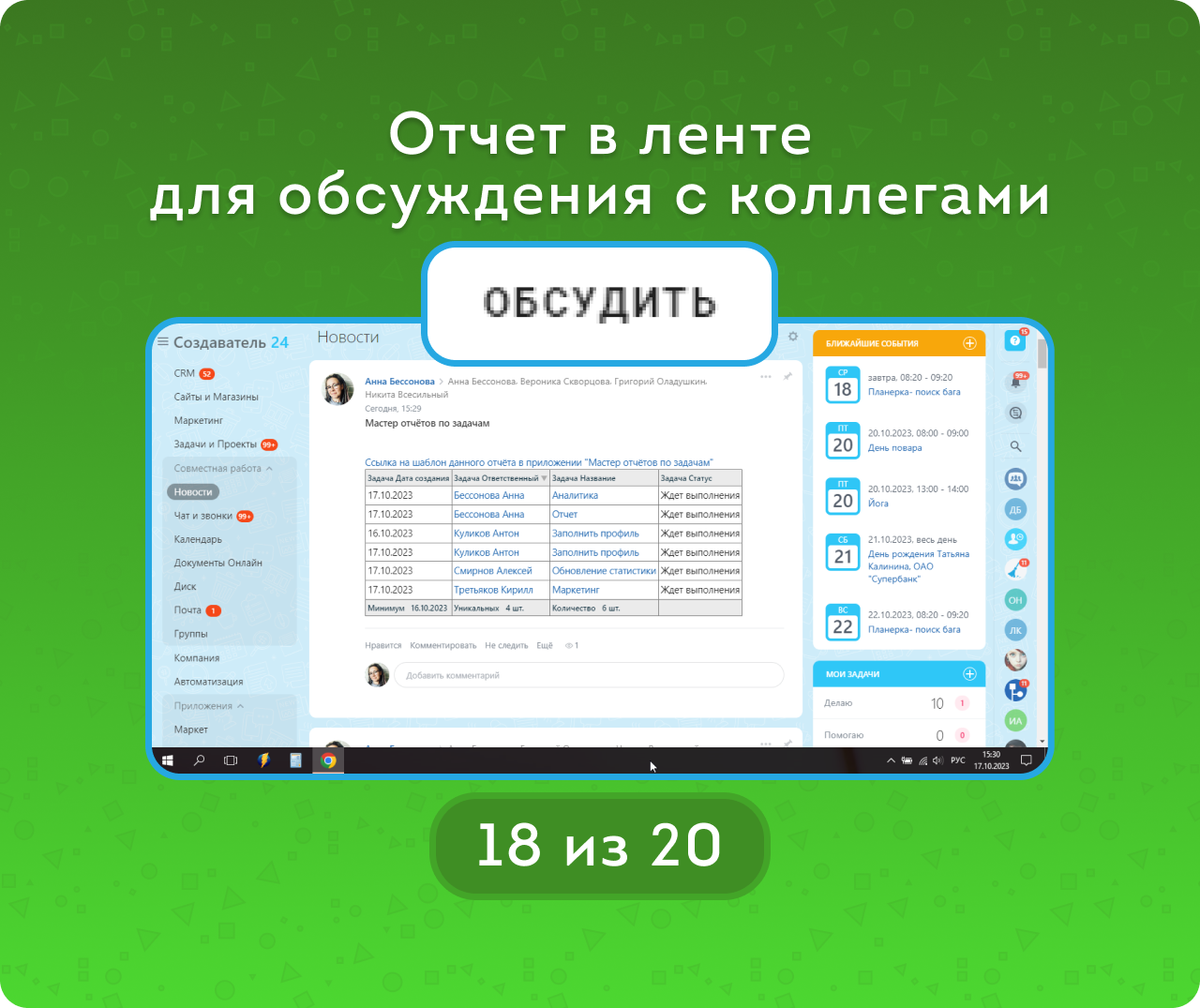 Опубликовать отчёт в Ленте новостей для обсуждения с коллегами.
