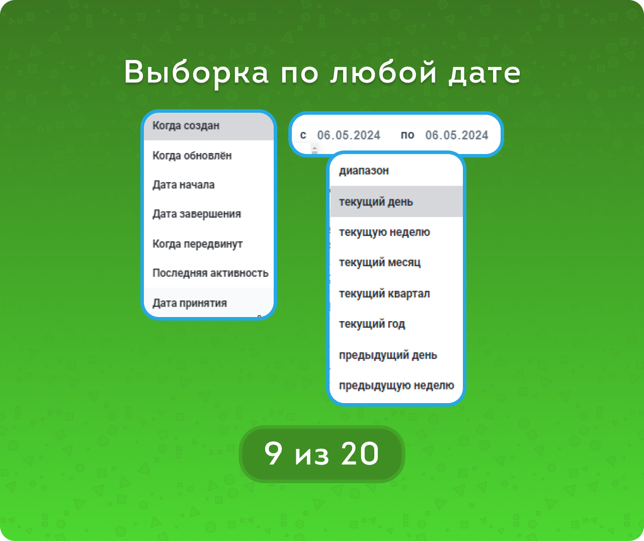 Гибкая работа с датами — выборка по любому типу дат (например, по Крайнему сроку или Дате закрытия).