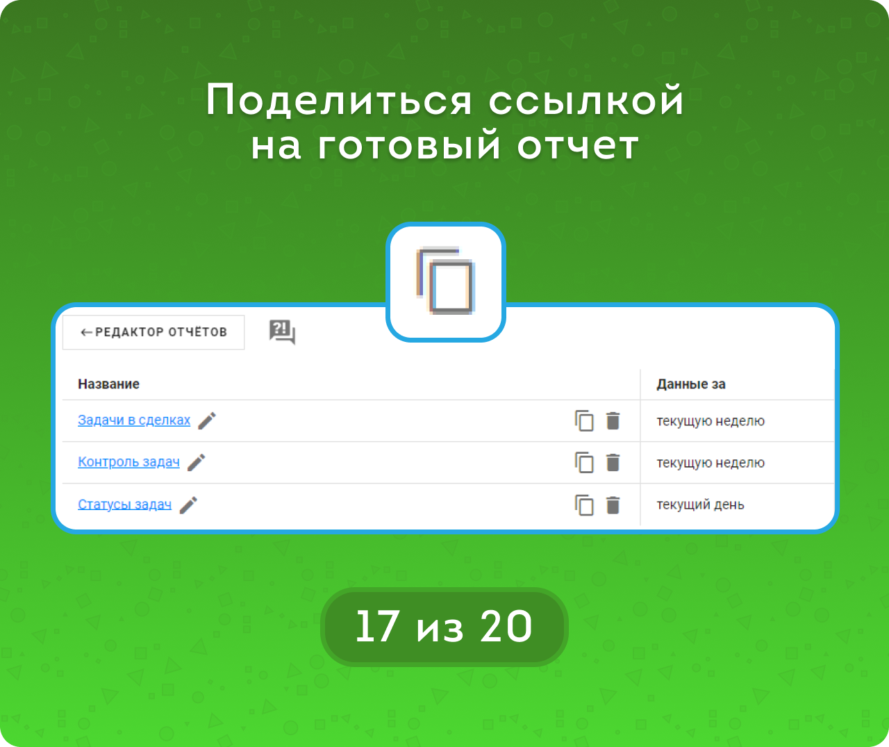Сохранять отчёт в виде ссылки и делиться им.