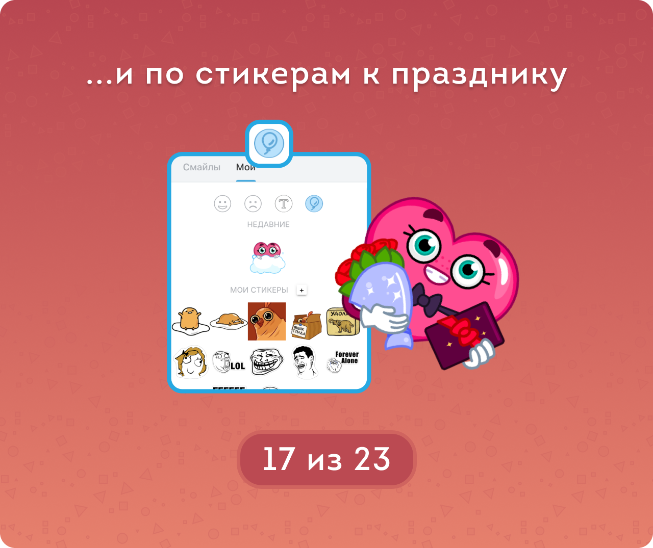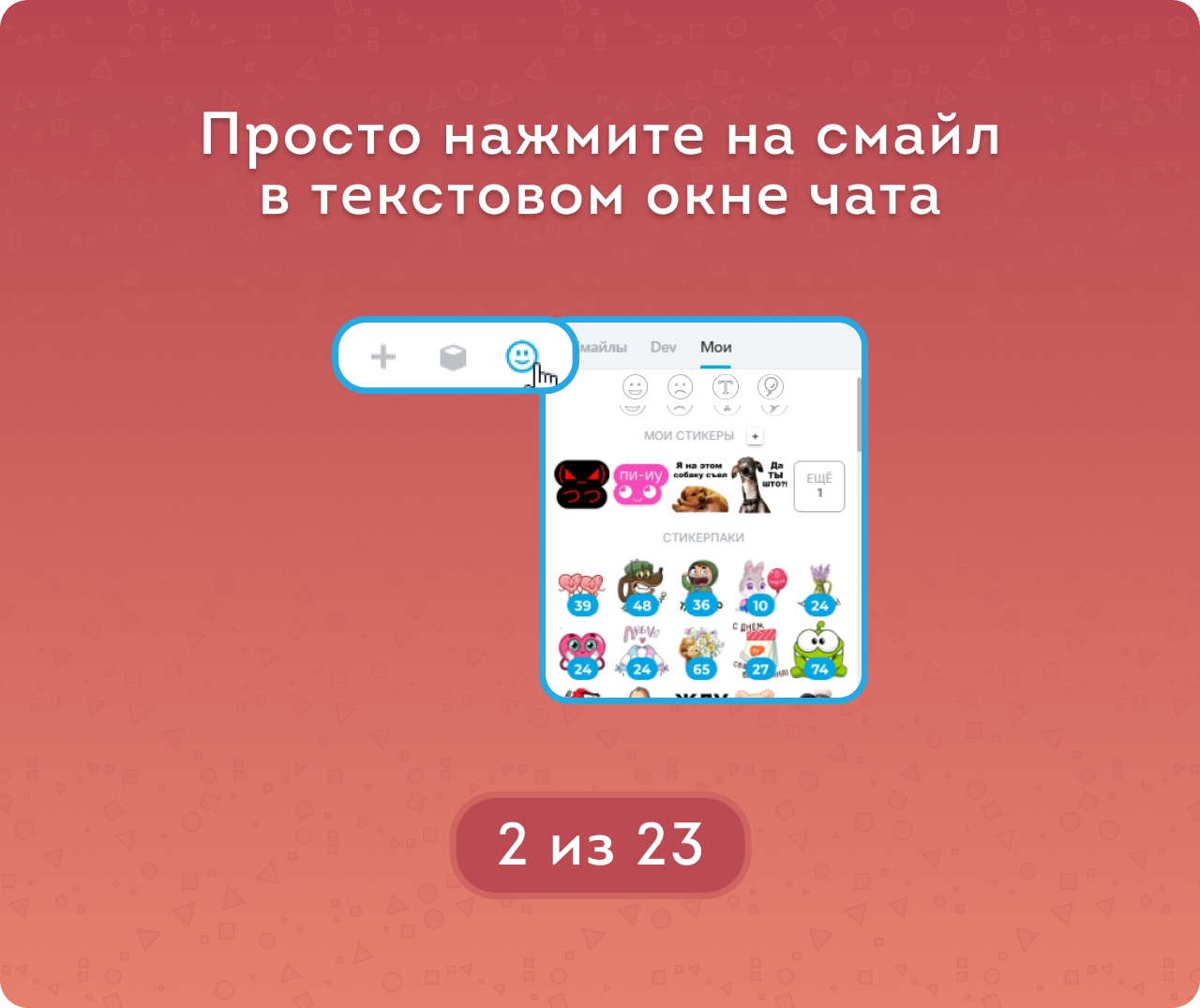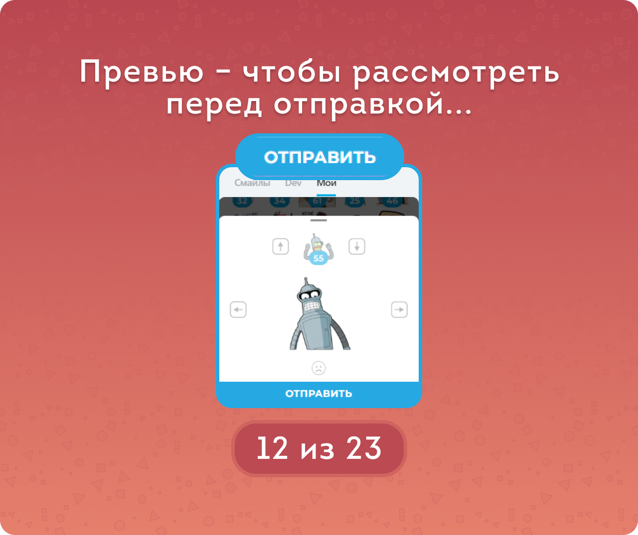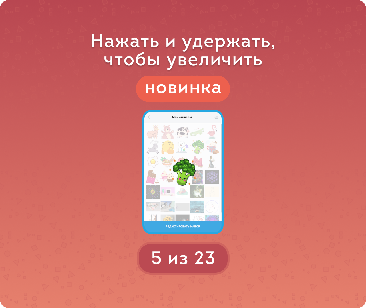 Стикеры как в Telegram — разнообразят общение с коллегами и запоминаются клиентам. 120+ готовых наборов включают в себя больше