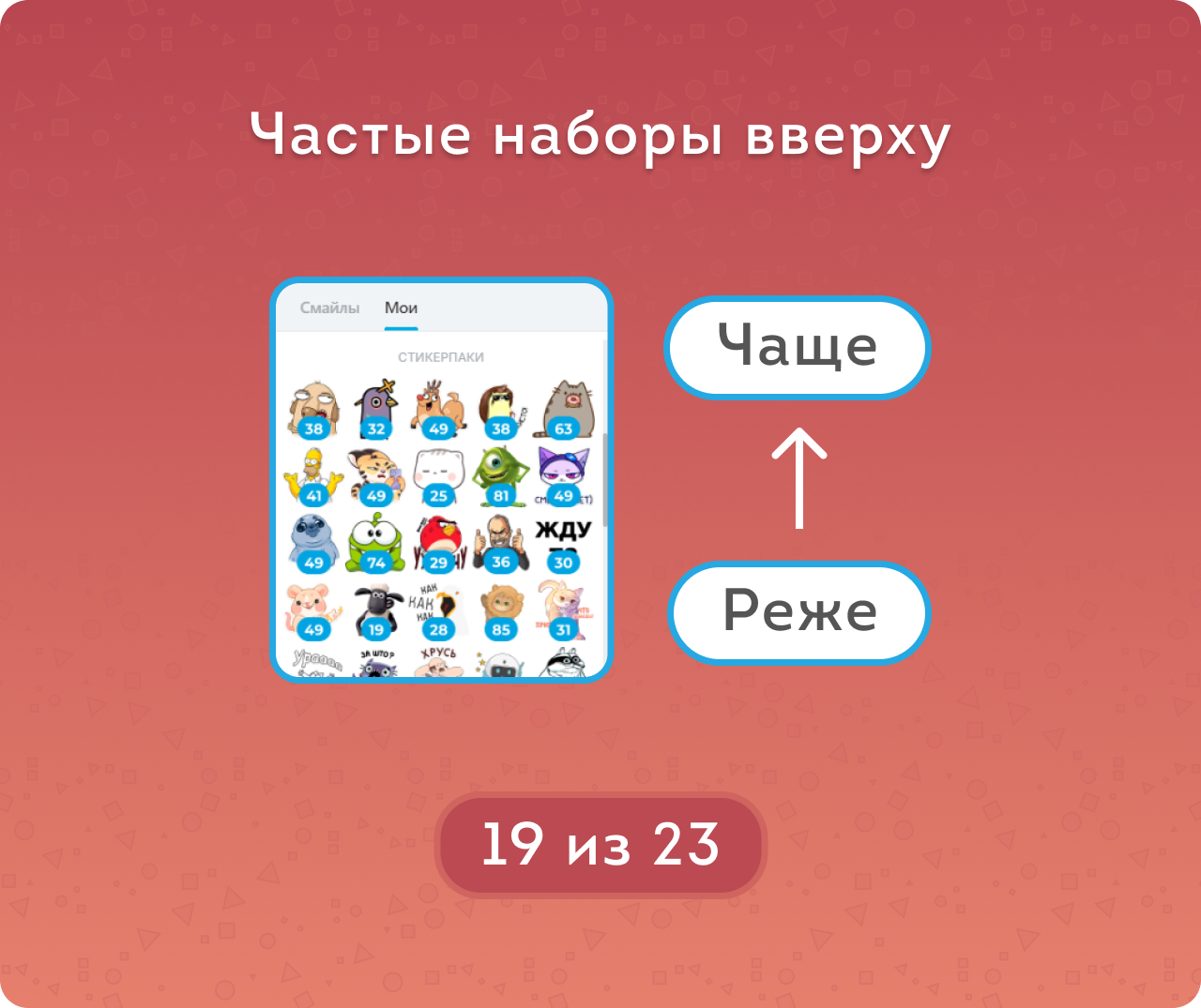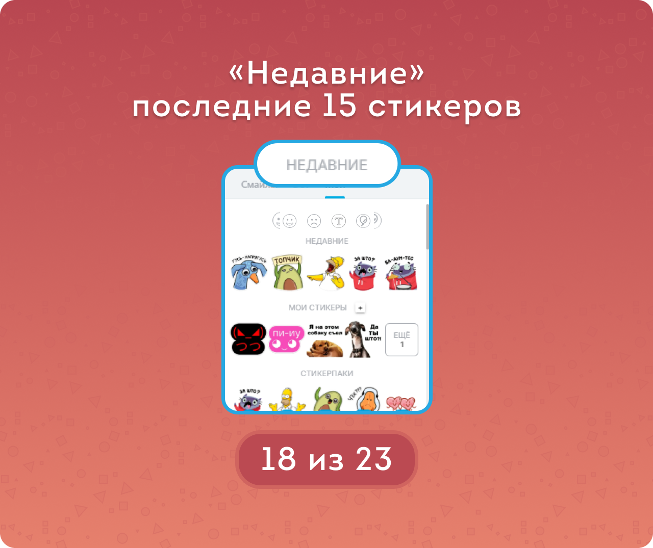 Для удобства сотрудников наборы сортируются по частоте использования за месяц, а последние 15 отправленных стикеров вынесены в отдельную группу «Недавние».