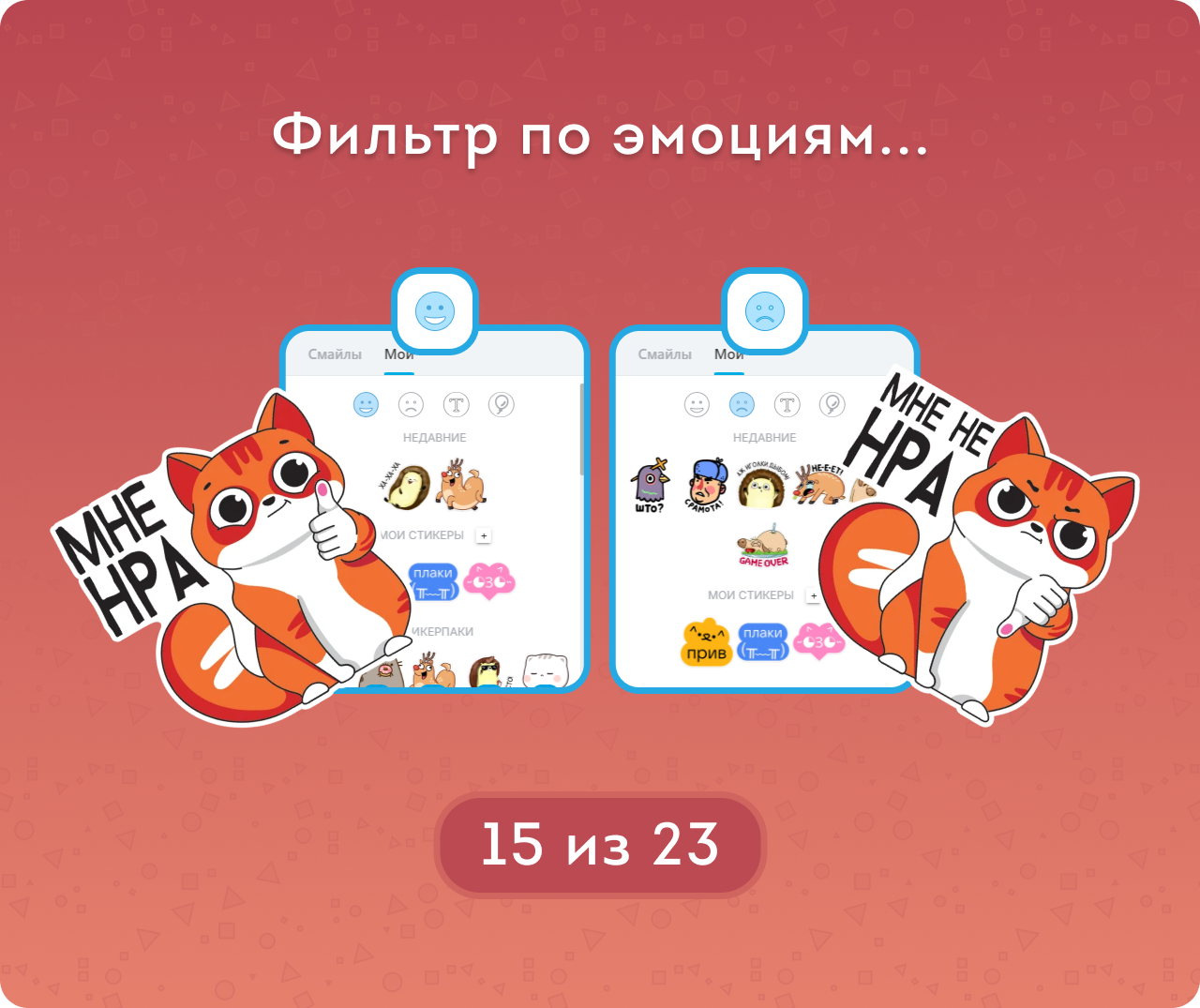 Для того, чтобы быстро найти подходящий к ситуации стикер — используйте фильтры: