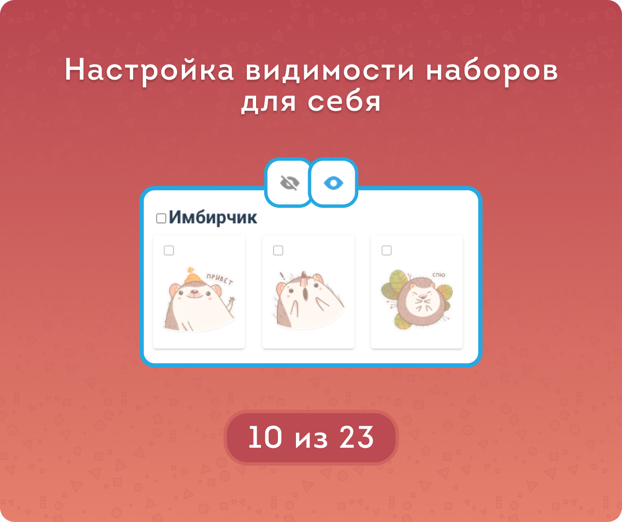 В основном приложении можно отключать ненужные стикерпаки, нажав на иконку «глазика».