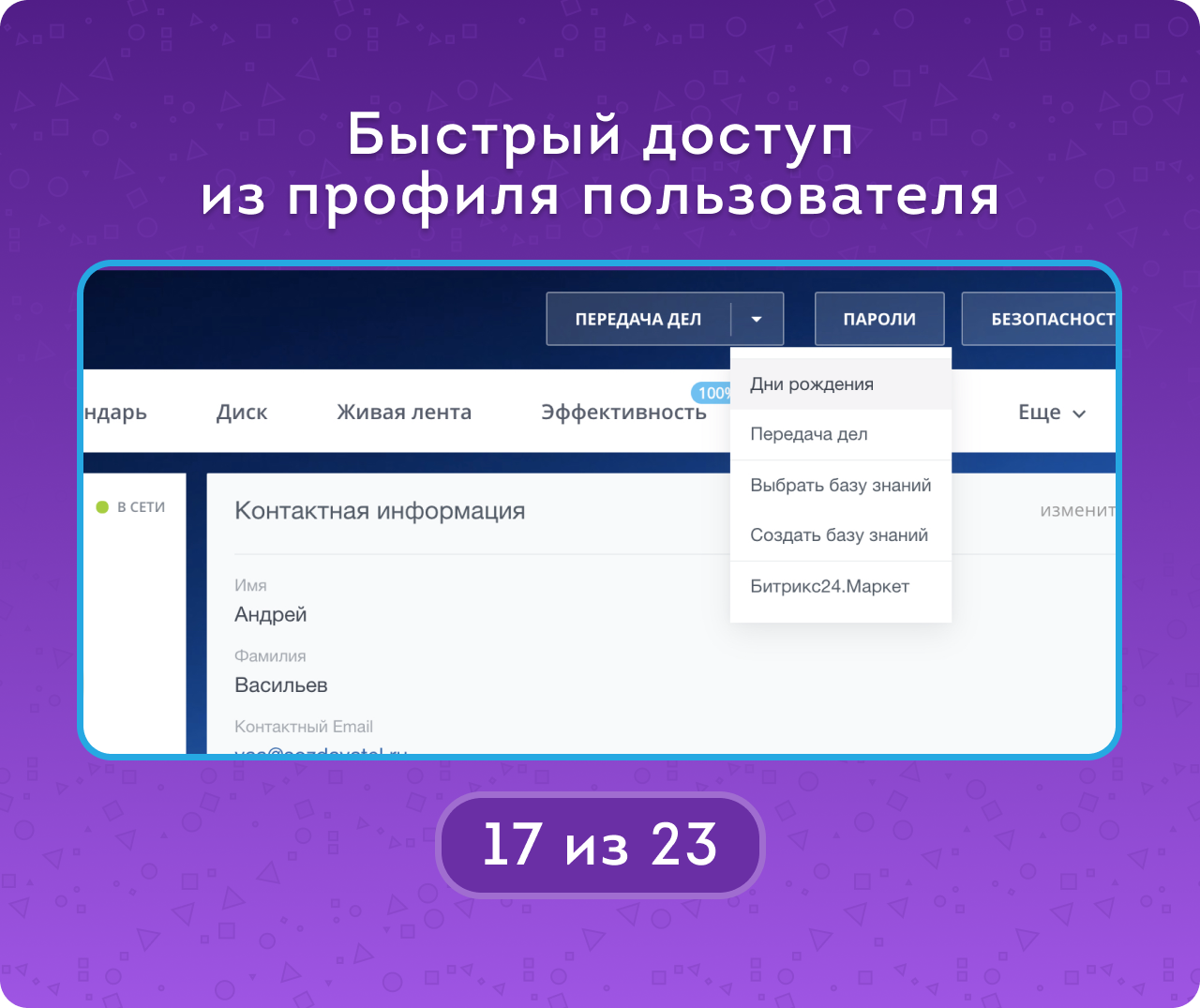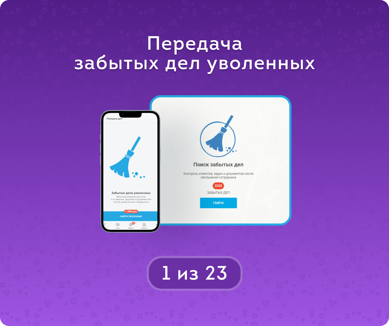 Автоматический поиск поможет найти и передать забытые задачи, лиды, сделки и всё остальное, сохранив структуру компании и назначив преемника.
