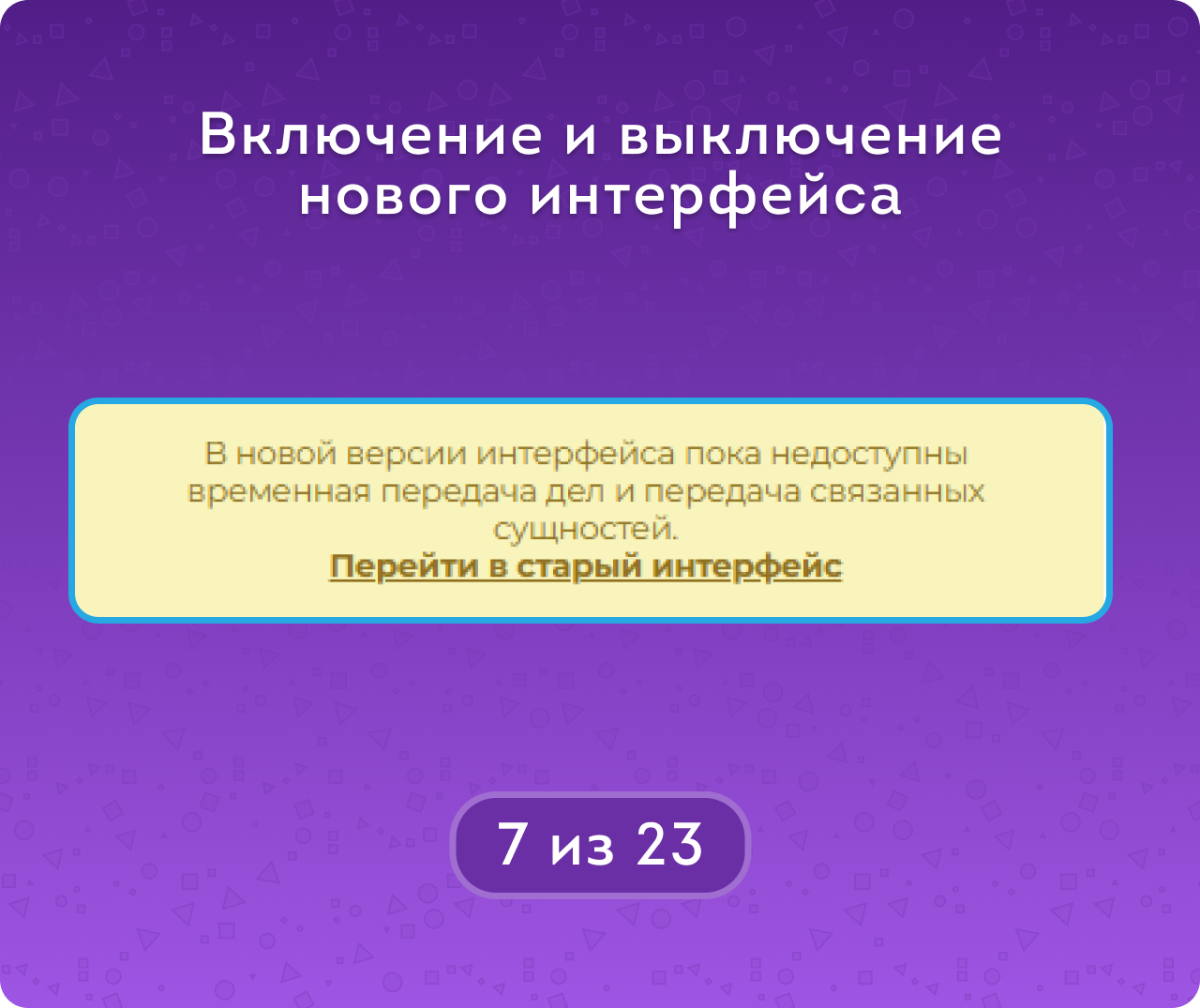 При передаче в таймлайн сущности автоматически добавляется комментарий: «Передано от Иванова к Петрову через приложение "Передача дел"». В новом интерфейсе Настроек предусмотрена возможность отключения комментариев (NEW). Кроме того, при каждой передаче можно вручную включить или выключить комментарии для текущей сессии. В старом интерфейсе такой возможности не предусмотрено.