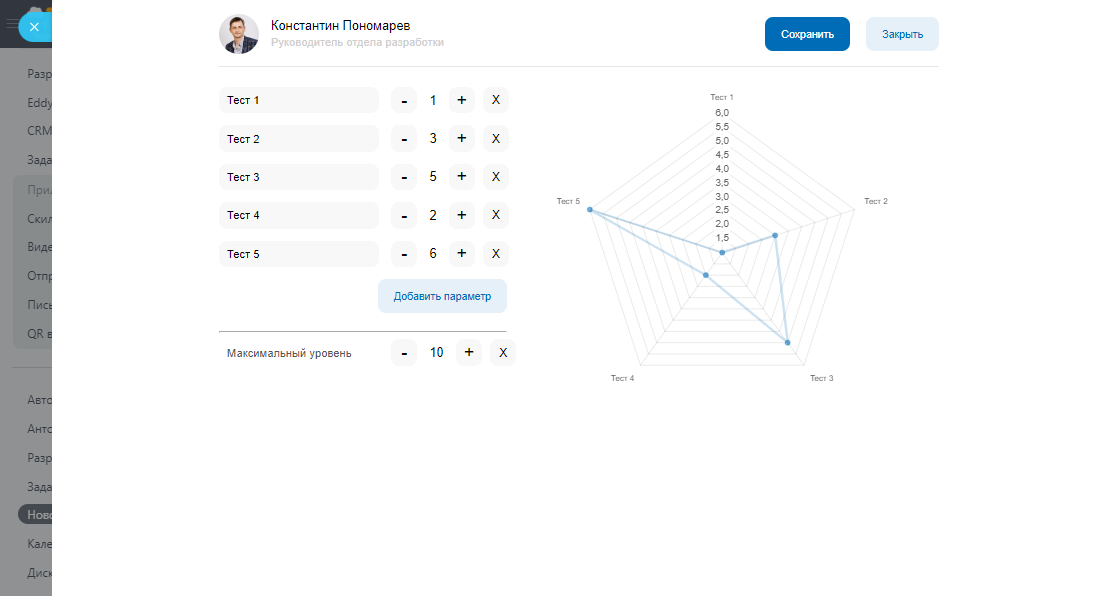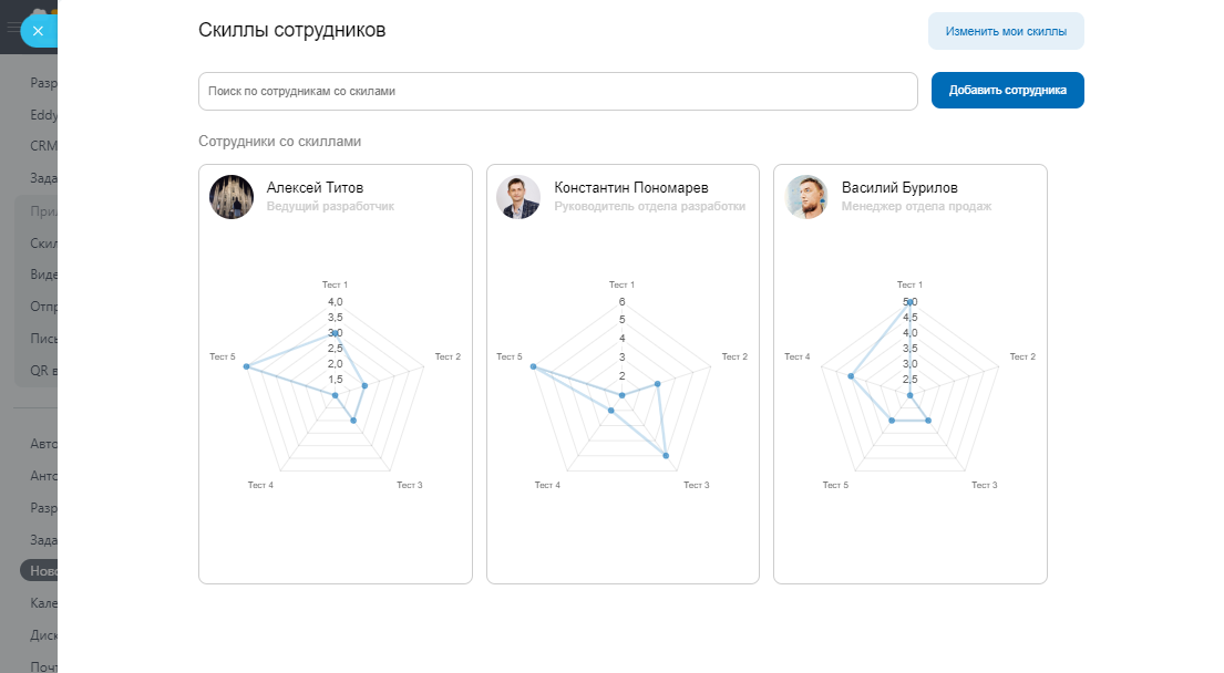 Приложение позволяет устанавливать скиллы сотрудника и просматривать их.