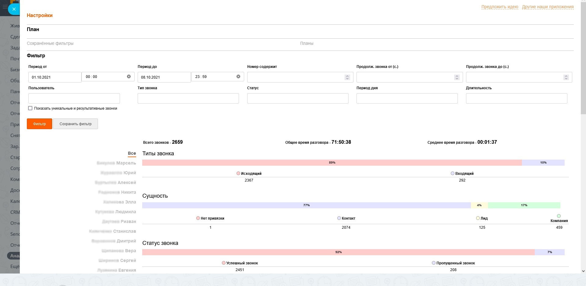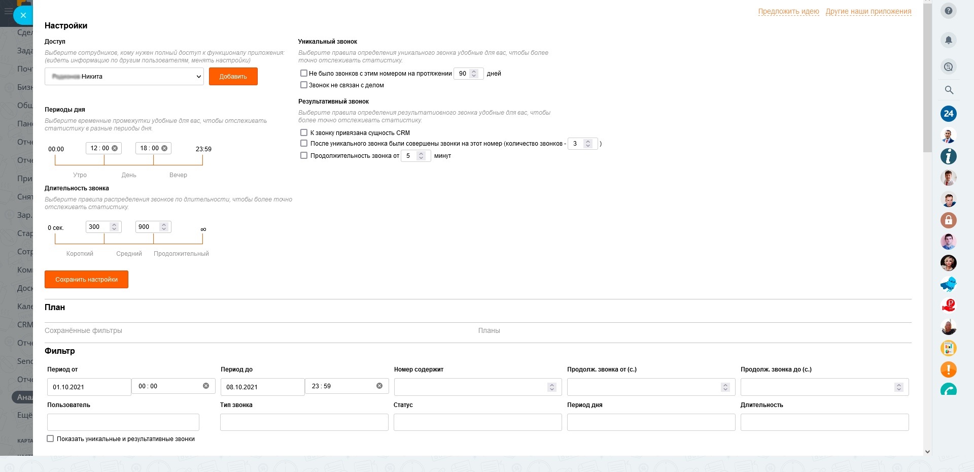 Статистика, планирование и анализ звонков — это приложение, позволяющее собрать информацию по звонкам, анализировать её, оценивать эффективность и продуктивность менеджеров, производить планирование отслеживать все необходимые показатели и отображать в удобном отчёте.
