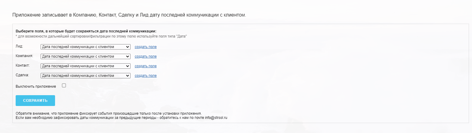 Установите наше приложение, которое автоматически будет фиксировать в сущностях CRM дату последней коммуникации!