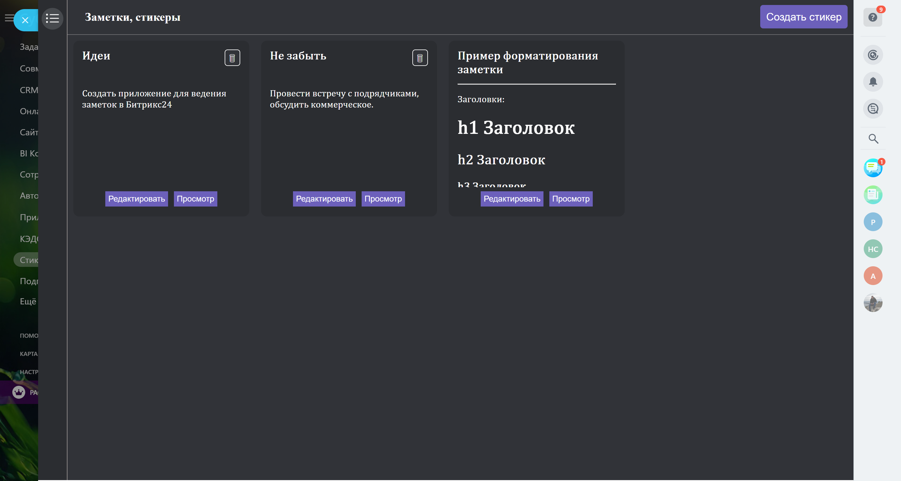 "Стикеры – Заметки" – удобное приложение для создания заметок, структурирования задач. Эффективное управление информацией в Bitrix24!