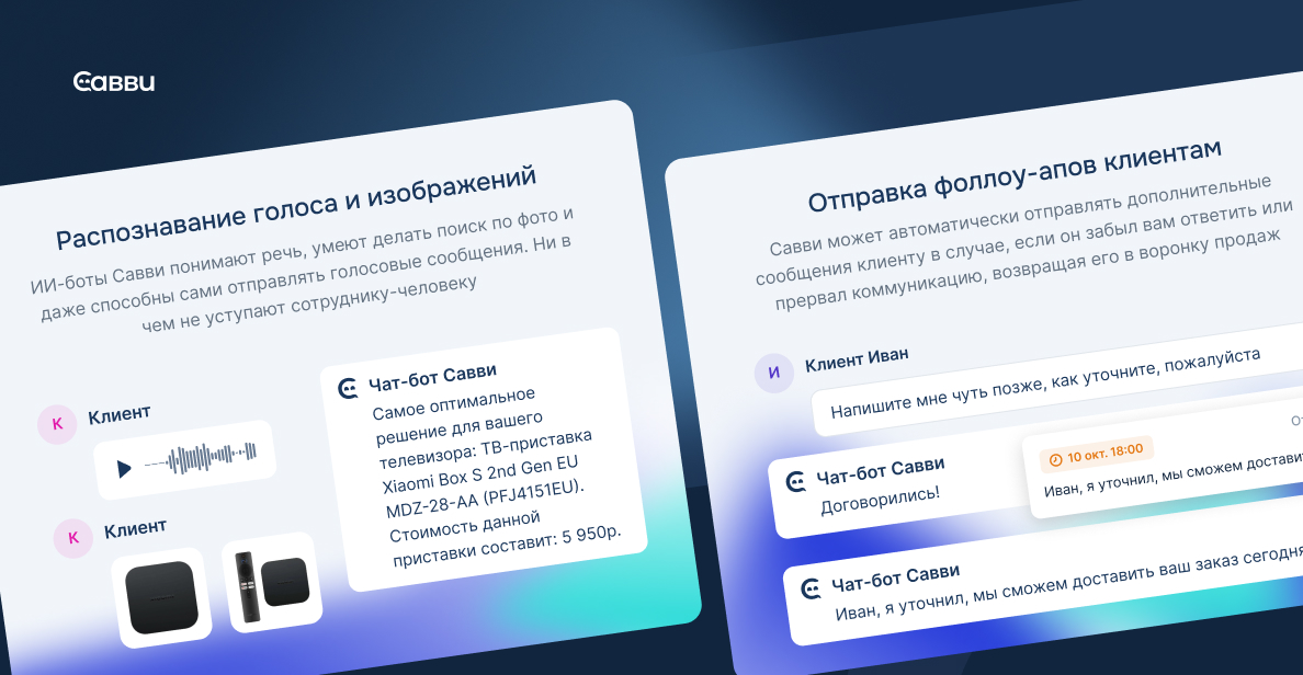 Савви общается, как человек, без сложной настройки.