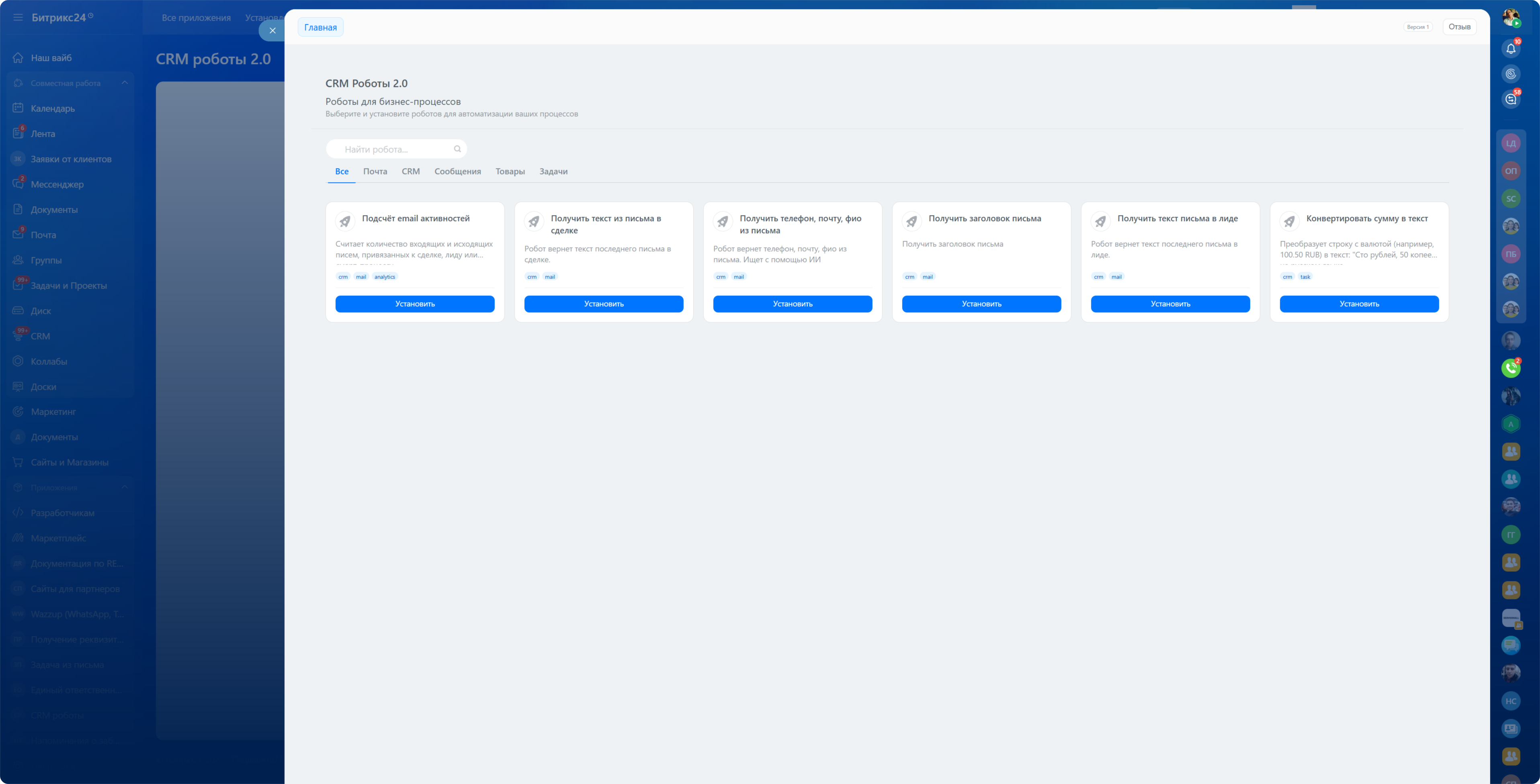 Набор роботов для автоматизации Битрикс24, есть с ИИ.