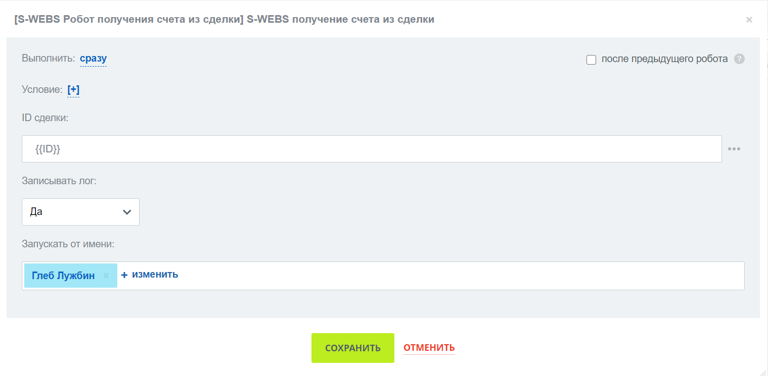 - Вы можете использовать этого Робота в связке с Роботом получения полей счета по его ID.