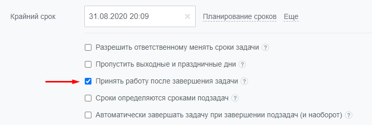 Приложение устанавливает флаг «Принять работу после завершения задачи» для всех задач