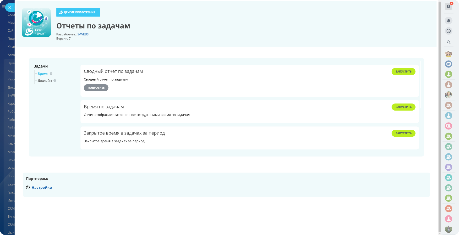 - Отчет о времени в задаче (встраивается в задачу).