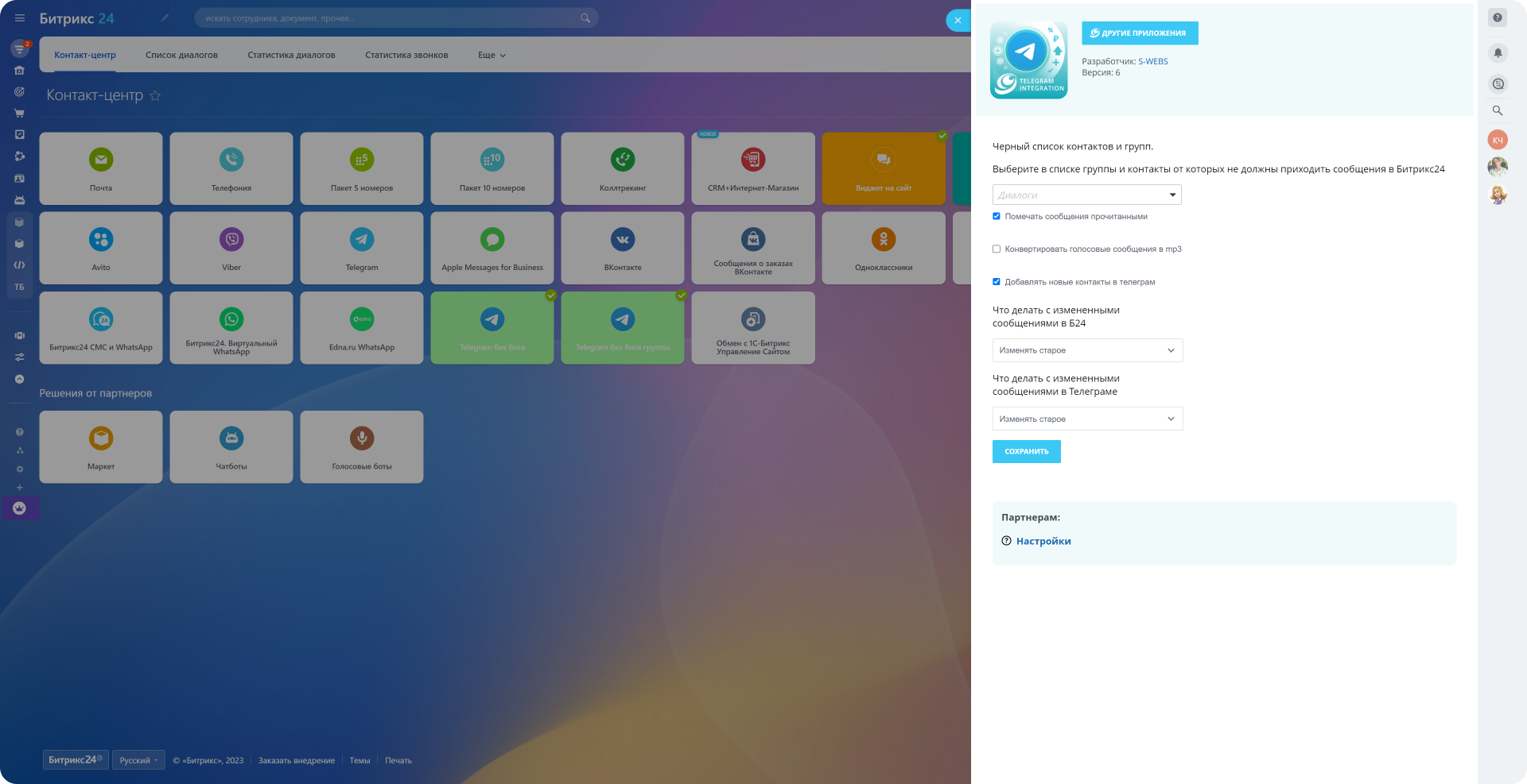 - Возможность редактирования сообщений как в телеграме, так и в Битрикс24.