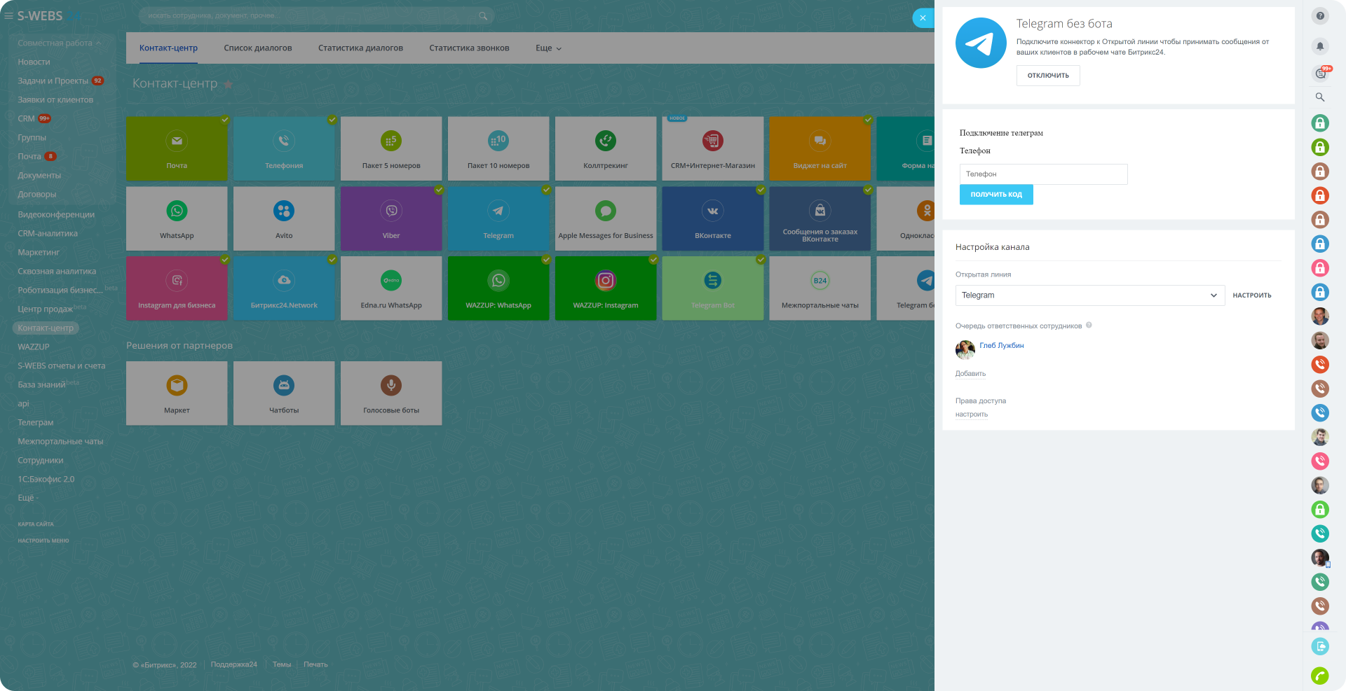 Подключение к телеграм без бота. Принимайте заявки в открытых линиях, пишите клиентам первыми.