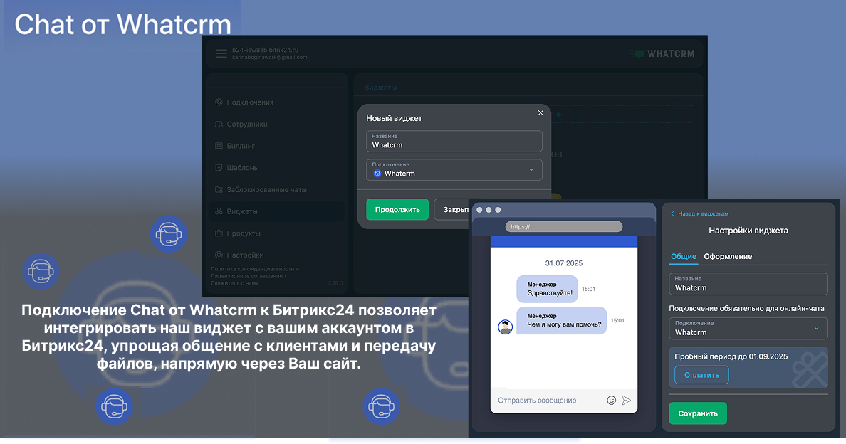 Попробуйте интеграцию Сhat от Whatcrm с Битрикс24 бесплатно в течение 3 дней!