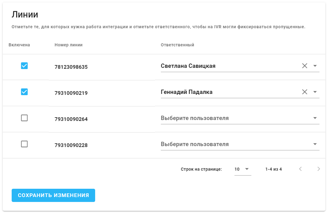 – возможность выбрать исходящую линию при совершении вызовов из карточки клиента;