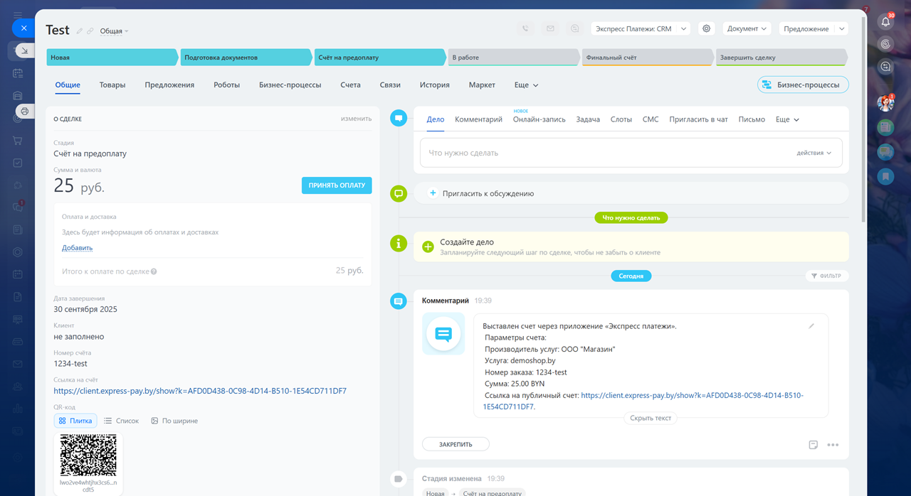 Выставление счетов и прием платежей