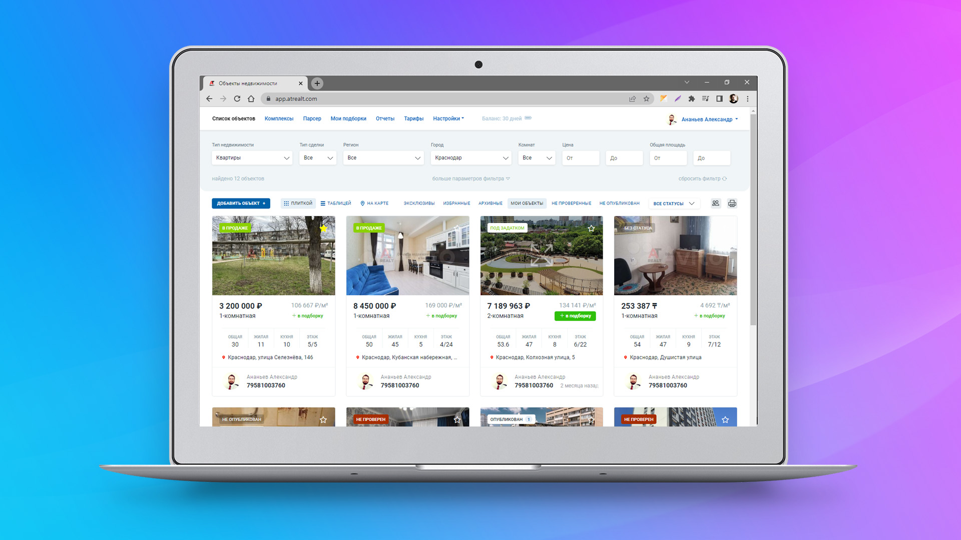 Ведение базы недвижимости, парсер объявлений от собственников, подборки, автоматическая выгрузка на Авито, Циан, Домклик, Яндекс и т.д. - то что нужно риелтору для успешных сделок.