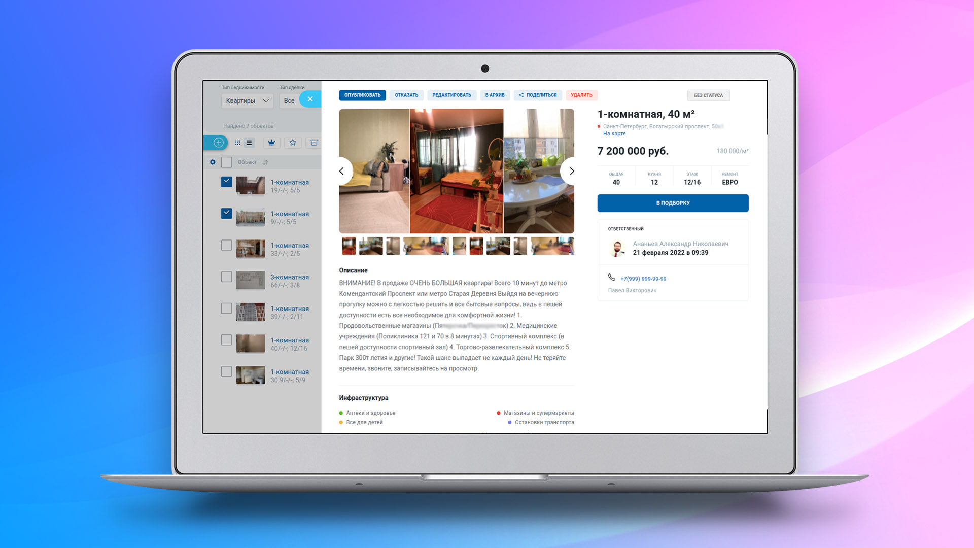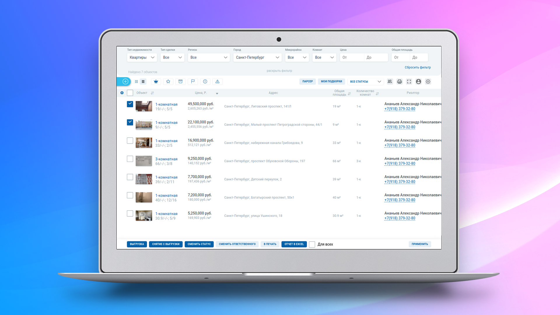 ✓ Ведение своей базы объектов недвижимости.✓ Выгрузка на площадки.