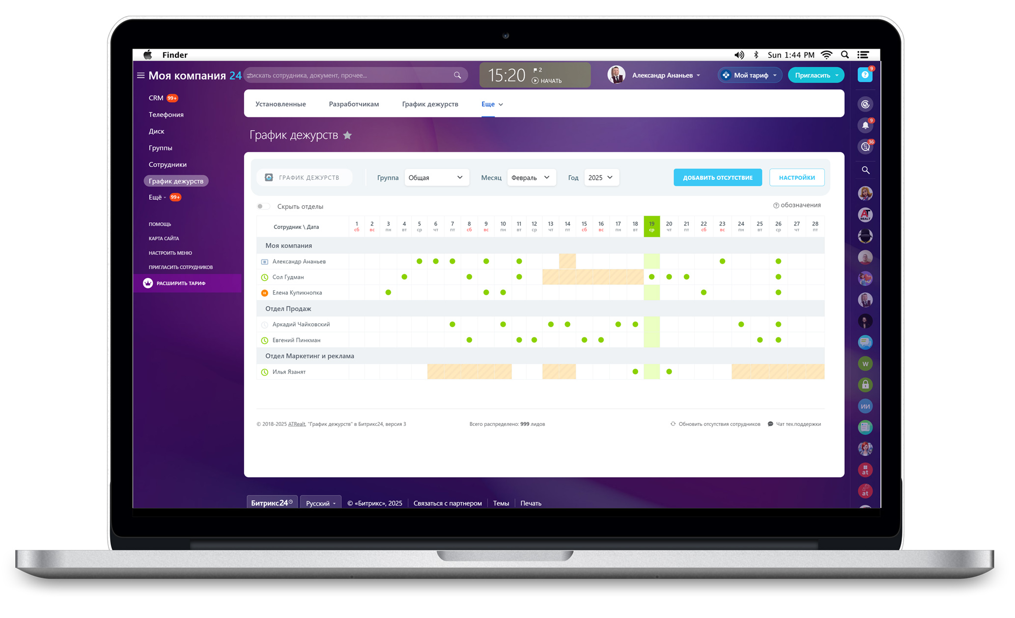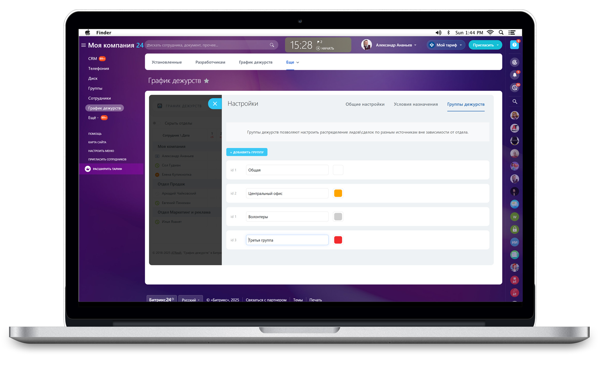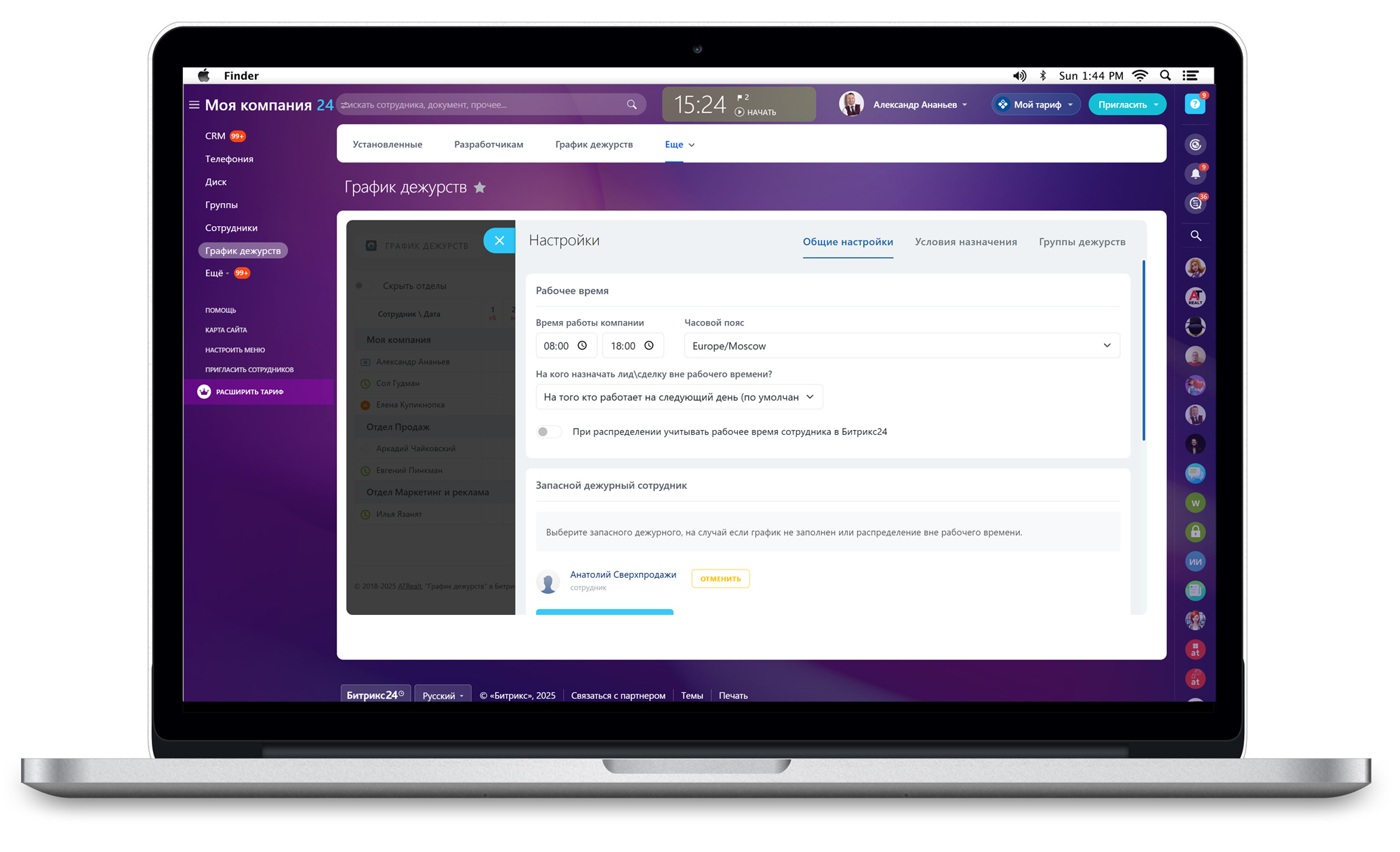 График дежурств автоматизирует распределение поступающих заявок в CRM среди сотрудников компании.