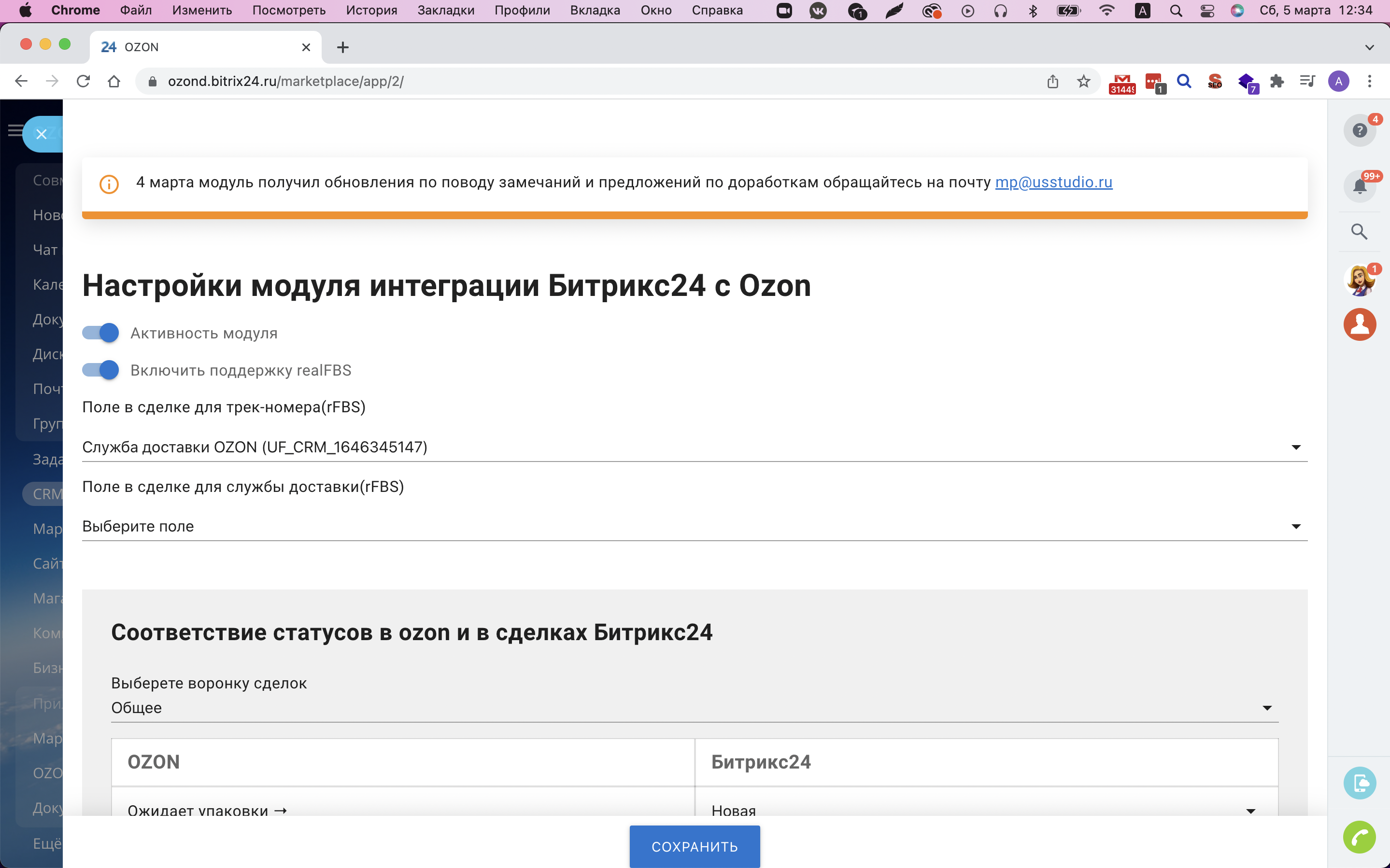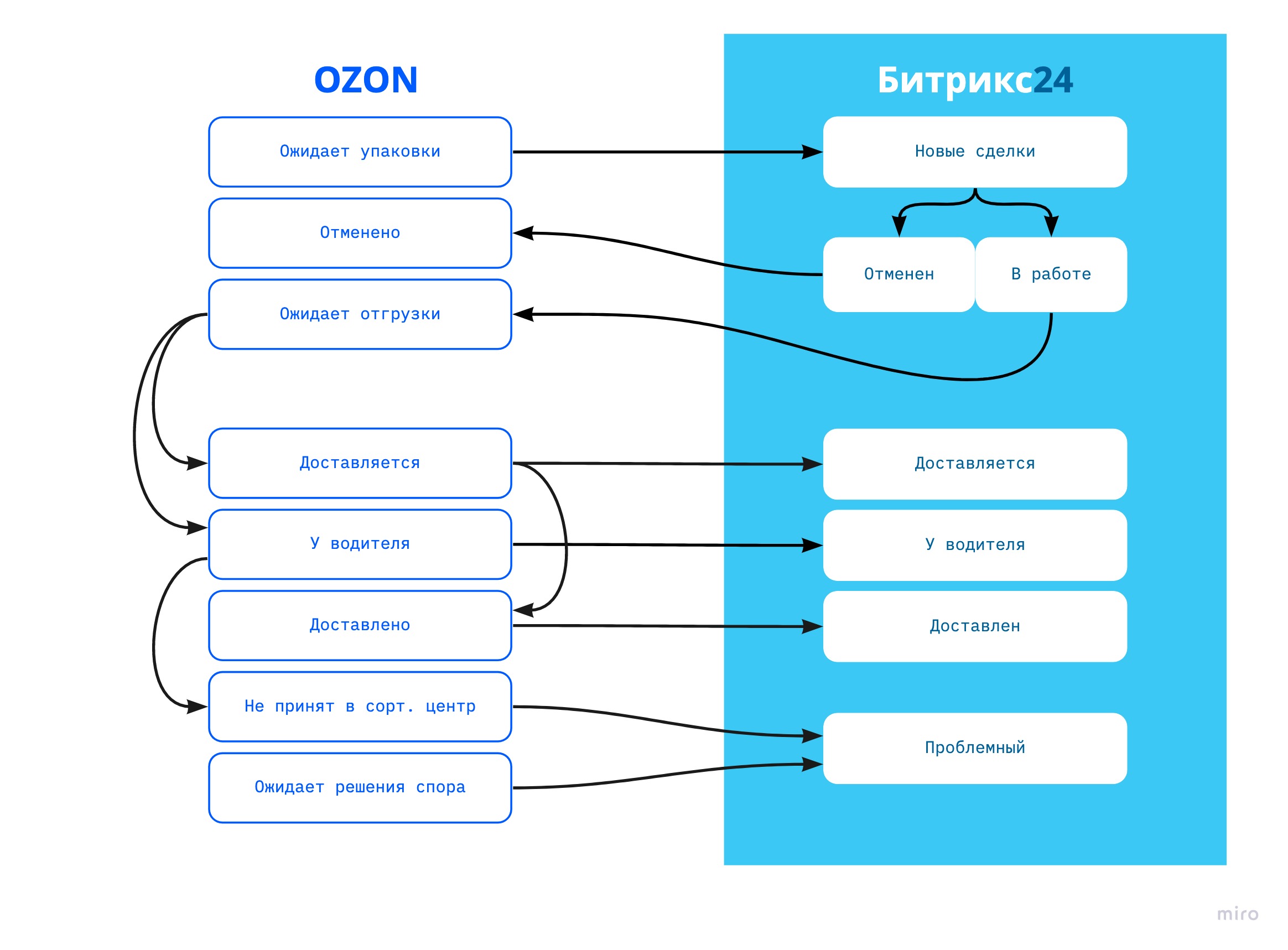 - Битрикс24 и Озон теперь связываются по полю "Номер отправления". Теперь можно спокойно менять название сделки как вам удобно