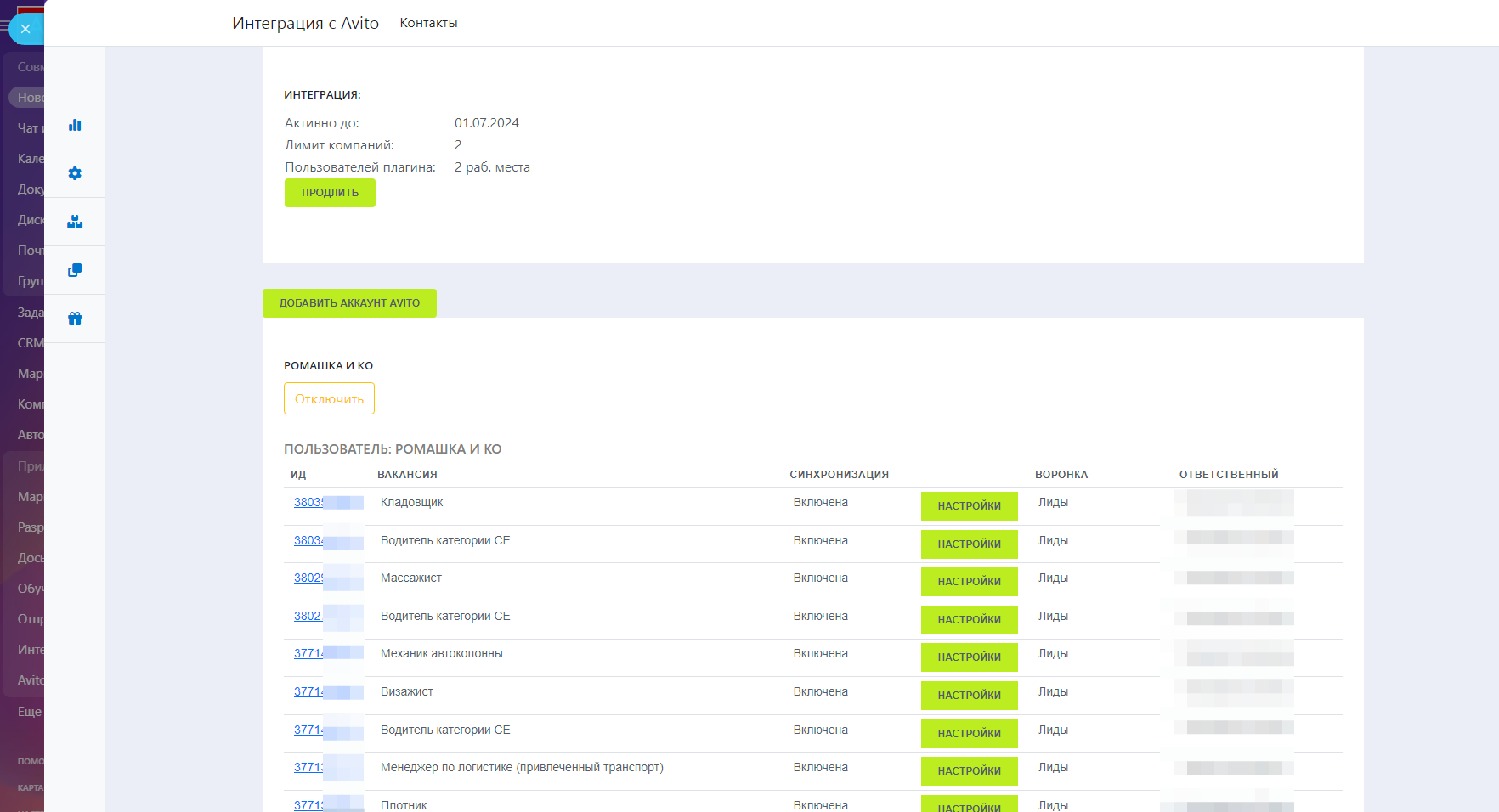 RedhamHR: Интеграция с Avito