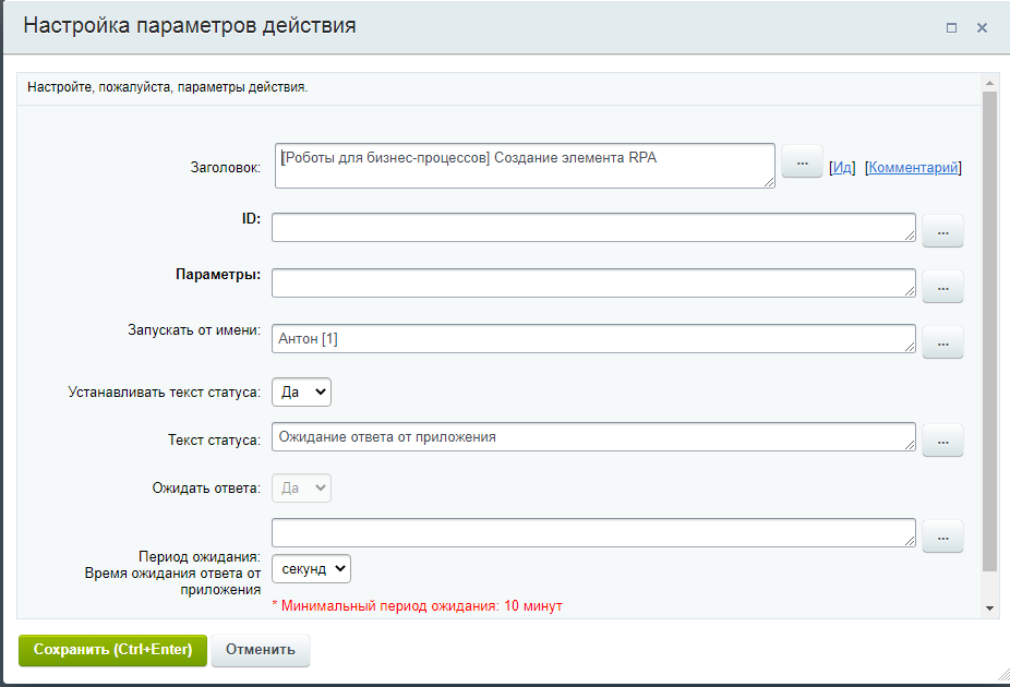 - Автоматически добавить элемент в раздел "Роботизация бизнеса";
