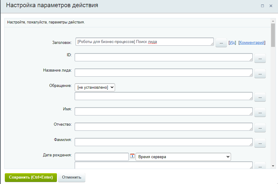 - Поиск реквизитов для лида, сделки, контакта, компании, счета, предложения