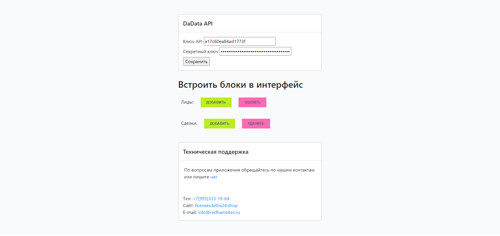 - Встраивание в лиды и сделки, для получение информации по адресу;