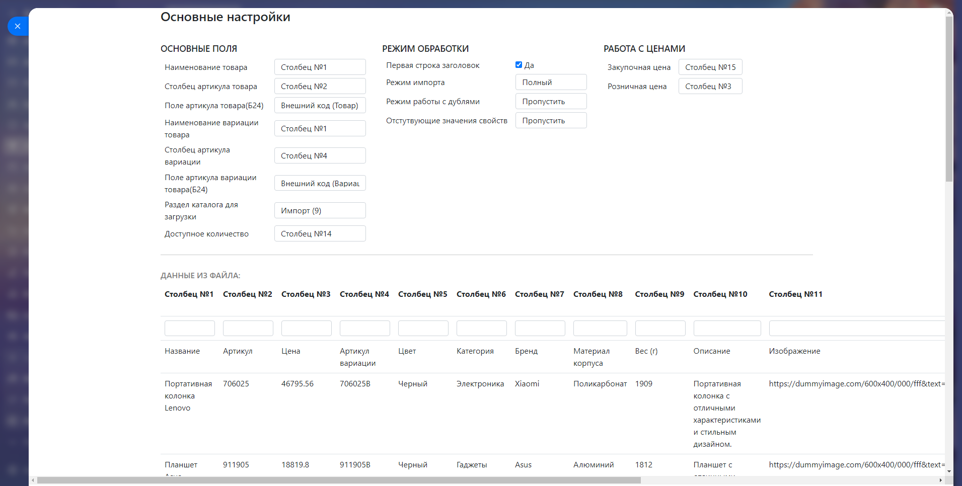 Импорт и обновление товаров