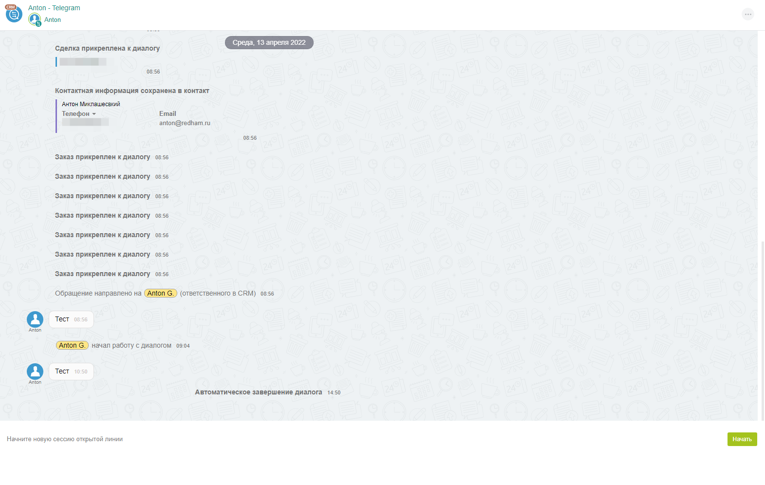 - Автоматическое создание чата в открытых линиях, при обращении на ваш телеграм аккаунт;