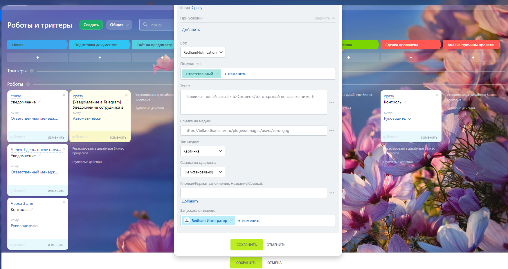 Попробуйте бесплатно и оцените удобство автоматизированной отправки сообщений при помощи роботов в бизнес-процессах!
