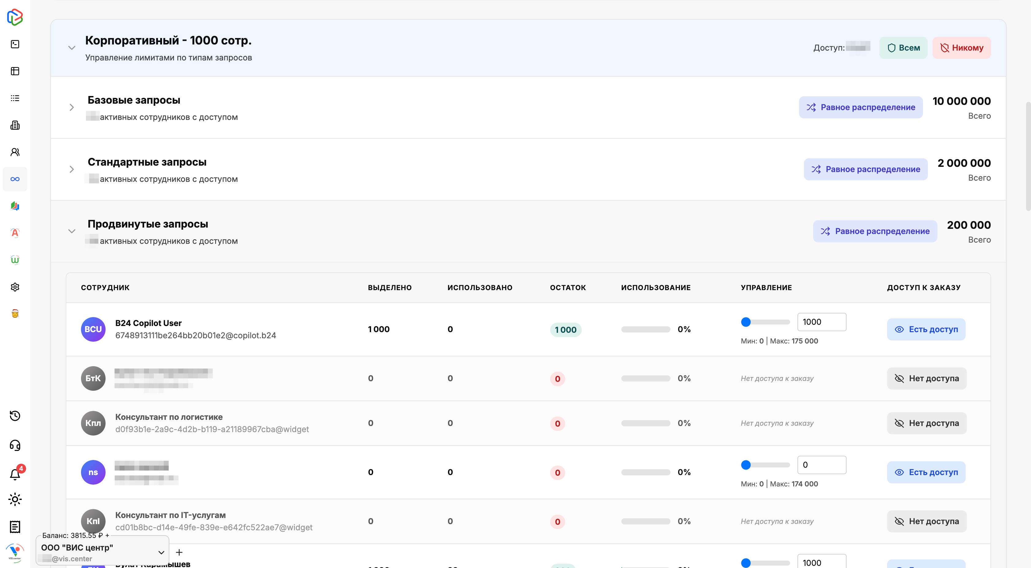 При необходимости оформить доп.пакеты конкретных типов запросов, в разделе "Тарифы" https://gpt.vis.center/p/tariffs
