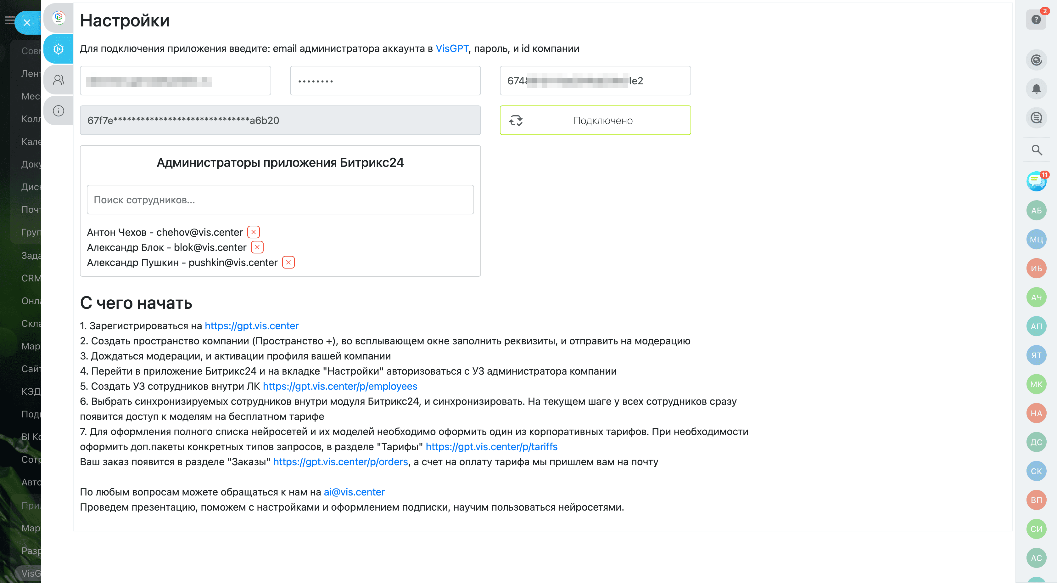 2. Подключить УЗ сотрудников внутри приложения Битрикс24.