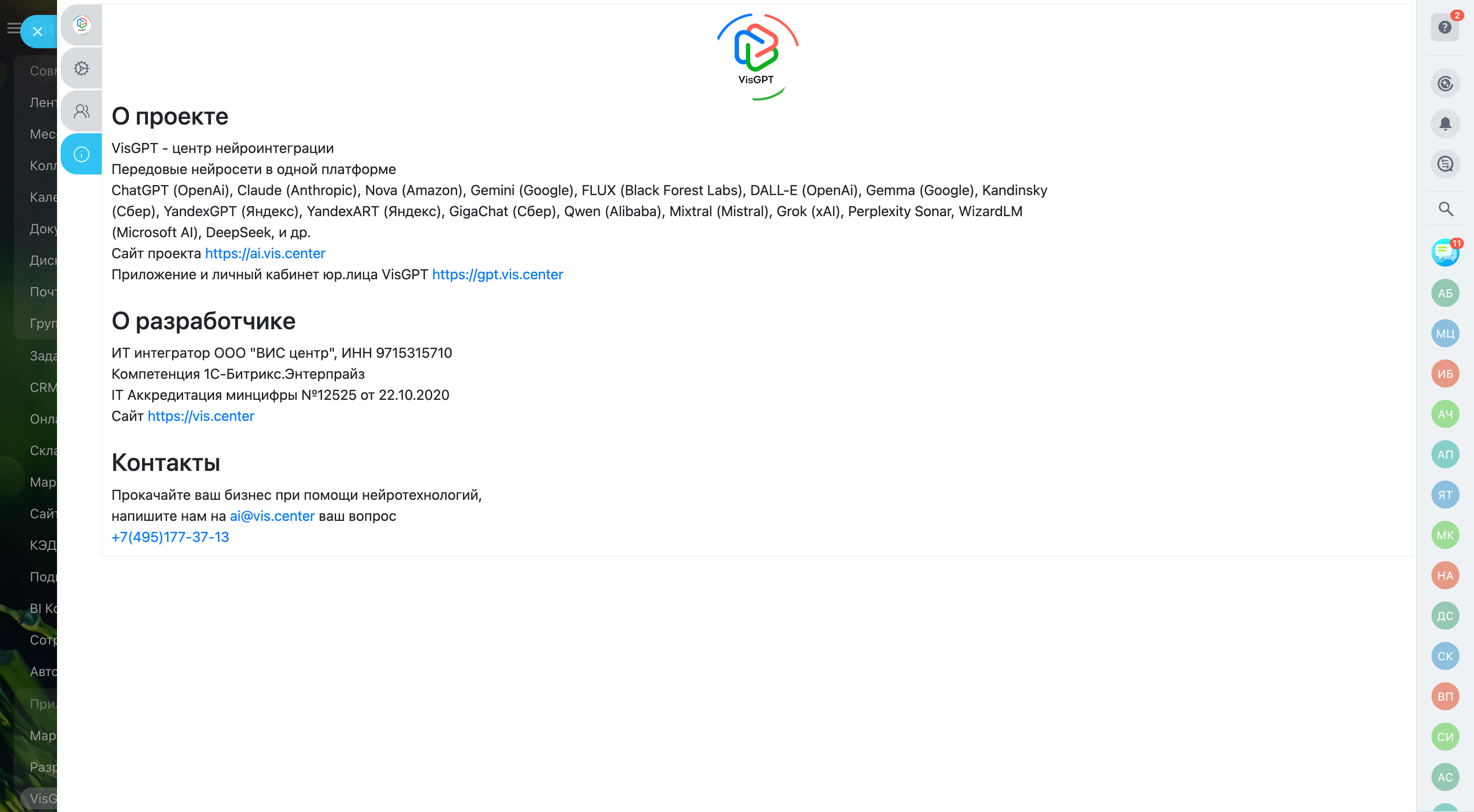 VisGPT - более 40 нейросетей для бизнеса, в одном приложении: ChatGPT, Claude, DeepSeek, GigaChat, YandexGPT и другие